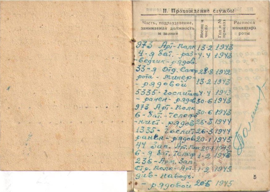 Пошел на фронт в 1942 г. Служил на Западном, Центральном и Белорусском фронтах в составе 973-го артиллерийского полка 36-й гвардейской дивизии 63-й армии в звании сержанта, в должности командира противотанковых орудий.
