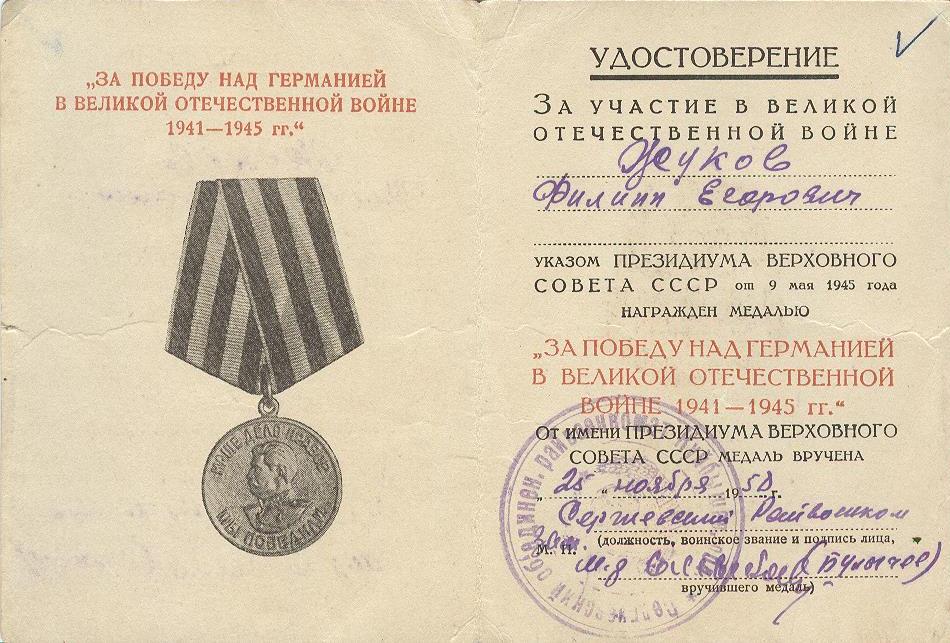 Материалы предоставлены снохой Жуковой Людмилой Георгиевной, с. Чекалино Сергиевского района Самарской области
