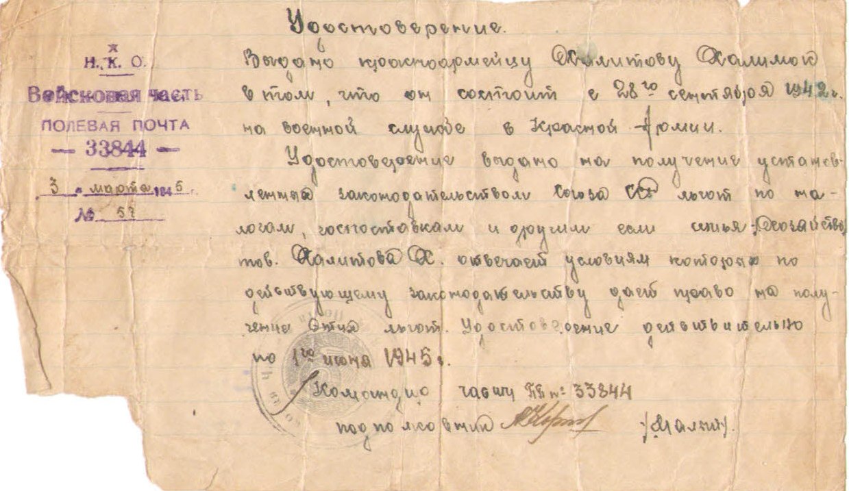 Из семейного архива дочери М.Х. Ахметовой, с. Мулловка Елховского района Самарской области