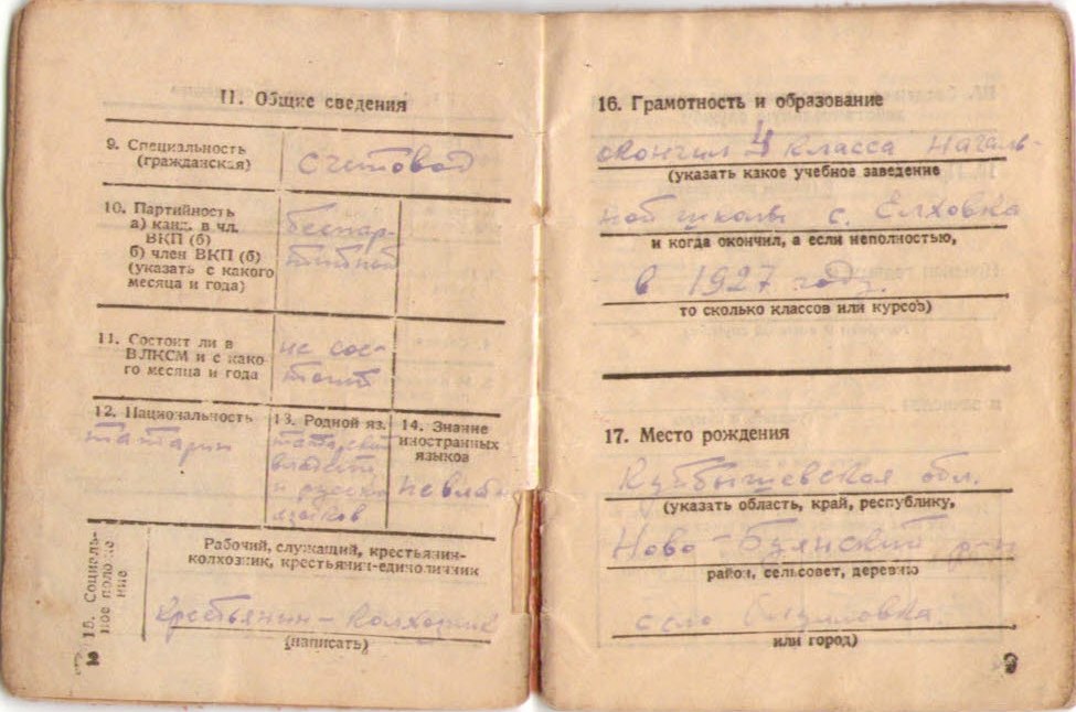 Из семейного архива сына, Н.С. Ибрагимова, с. Мулловка Елховского района Самарской области