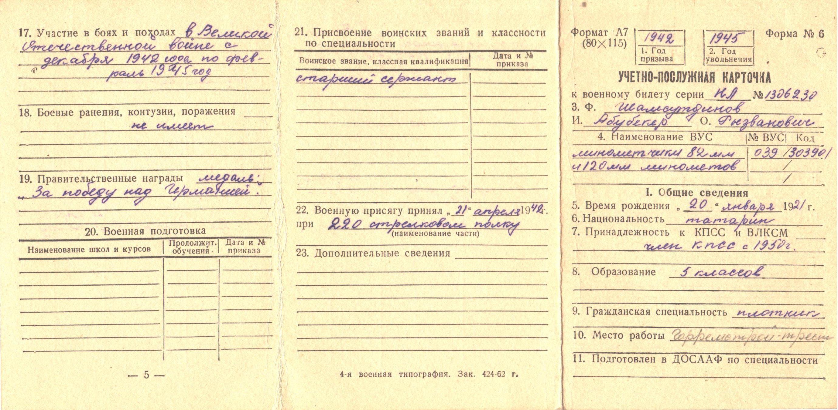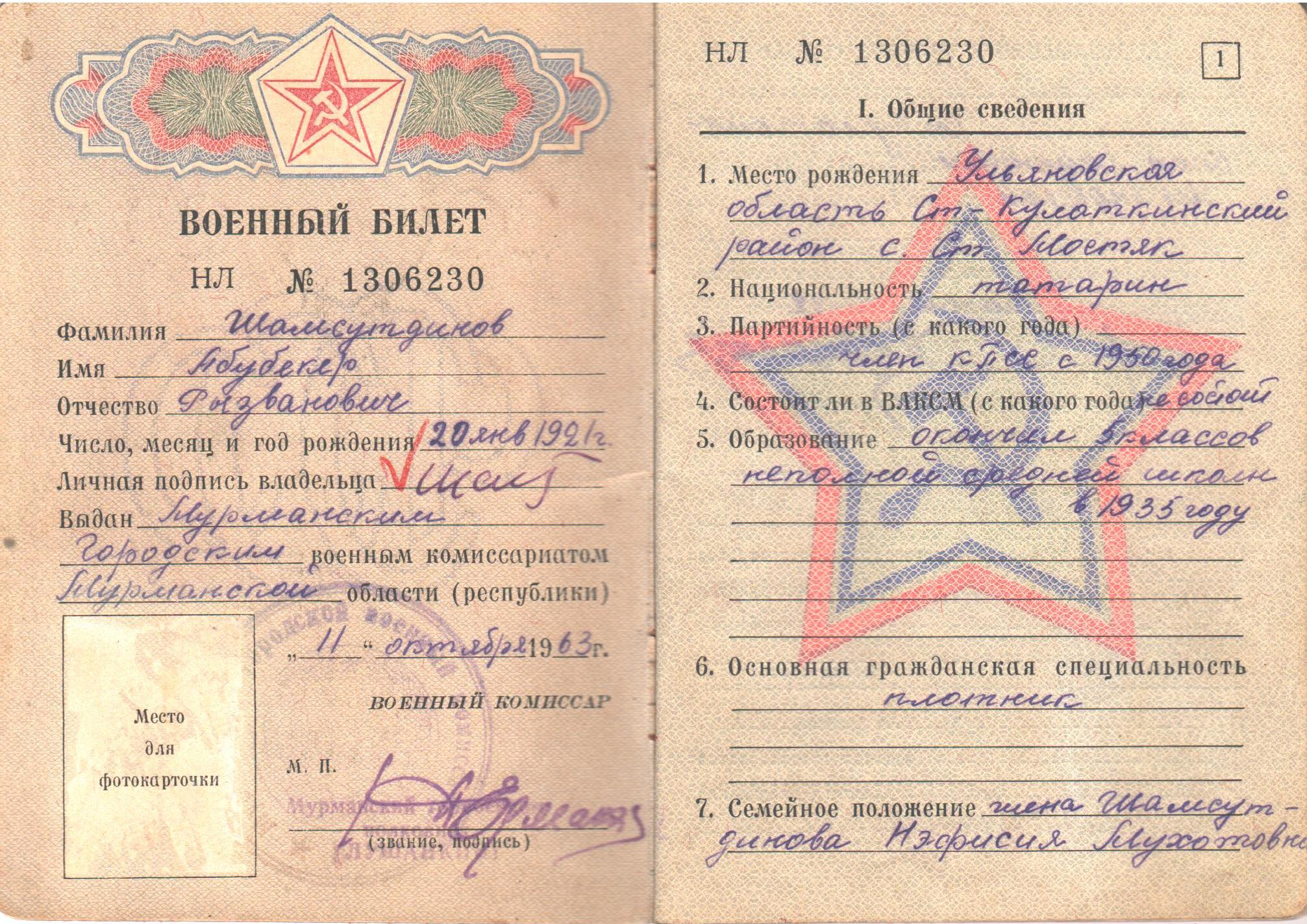 Из семейного архива Абубакера Рызвановича Шамсутдинова, п. Варламово Сызранского района Самарской области