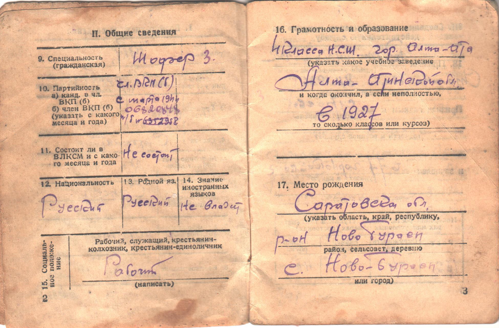 Родился 10 июня 1914 г. в с. Новые Бурасы Ново-Бурасской волости Саратовского уезда Саратовской губернии (ныне - Новобурасский район Саратовской области) в семье крестьян. В 4 года остался без отца, в 6 лет – без матери. Скитался, оказался в Средней Азии. В 1927 г. окончил 4 класса школы в г. Алма-Ата Казахской АССР.