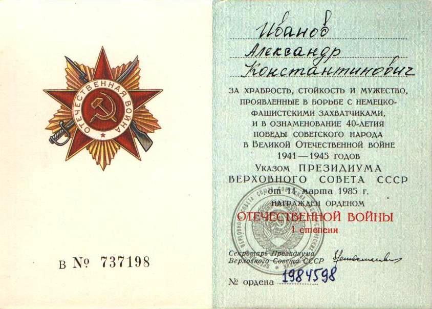 Александр Константинович Иванов – участник Великой Отечественной войны.