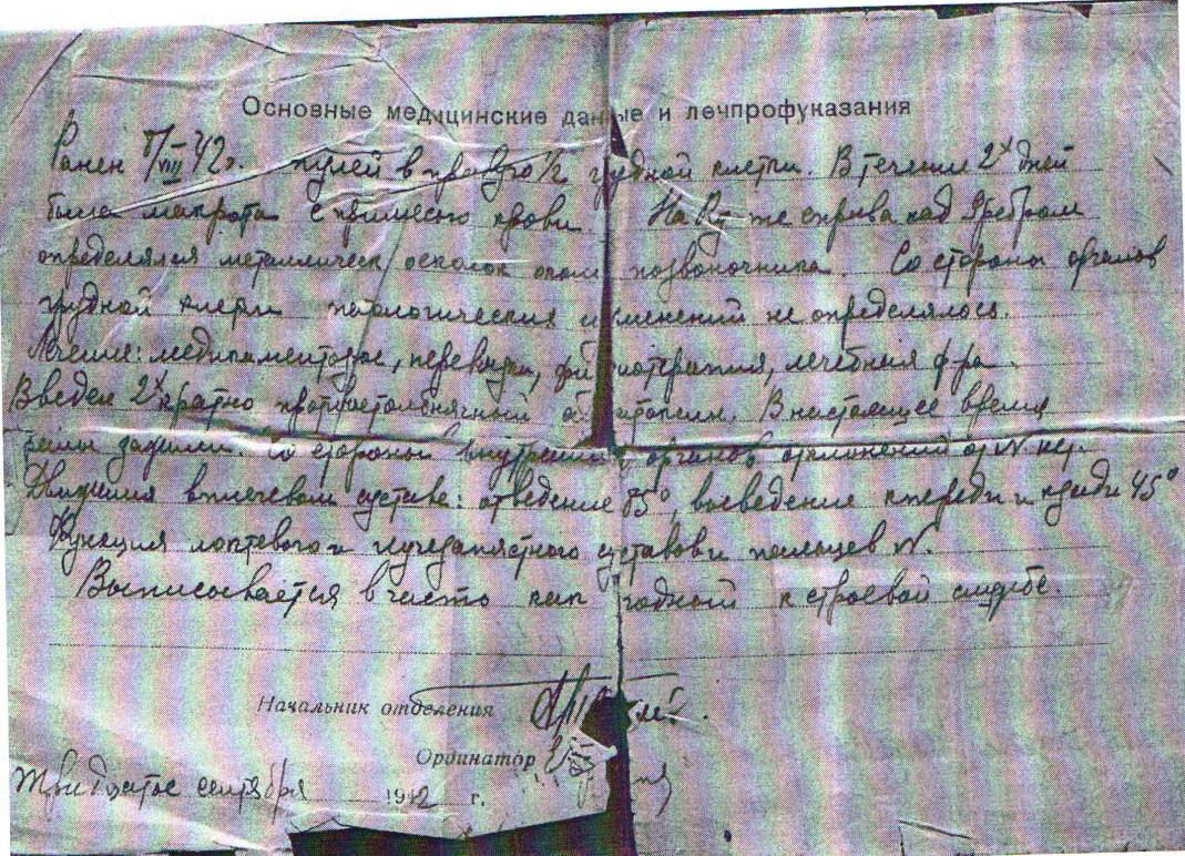Участвовал в обороне Ленинграда. В августе 1942 г. получил сквозное пулевое ранение грудной клетки, поэтому некоторое время находился в госпитале.