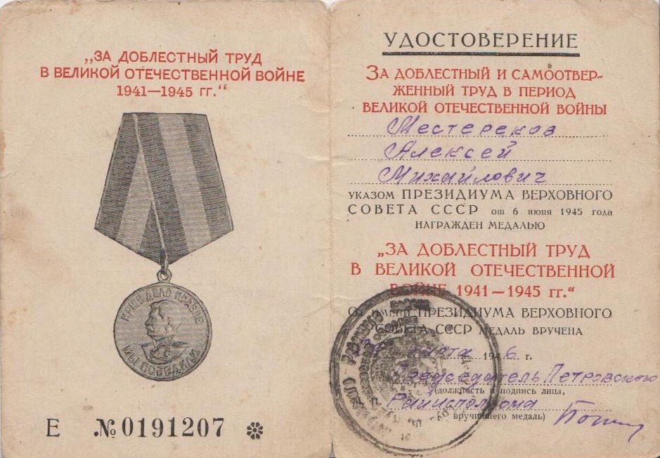 Алексей Михайлович Местереков. Участник Великой Отечественной войны.