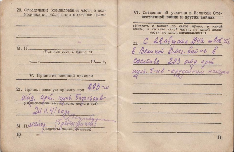 Был призван на фронт по мобилизации 1 августа 1941 года в 293-й отдельный артиллерийско-пулеметный батальон. Демобилизовался в ноябре 1945 года.