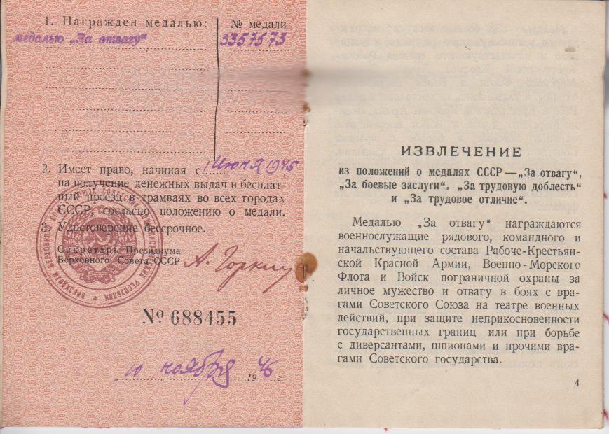 Информация из Приказа о награждении медалью "За отвагу":