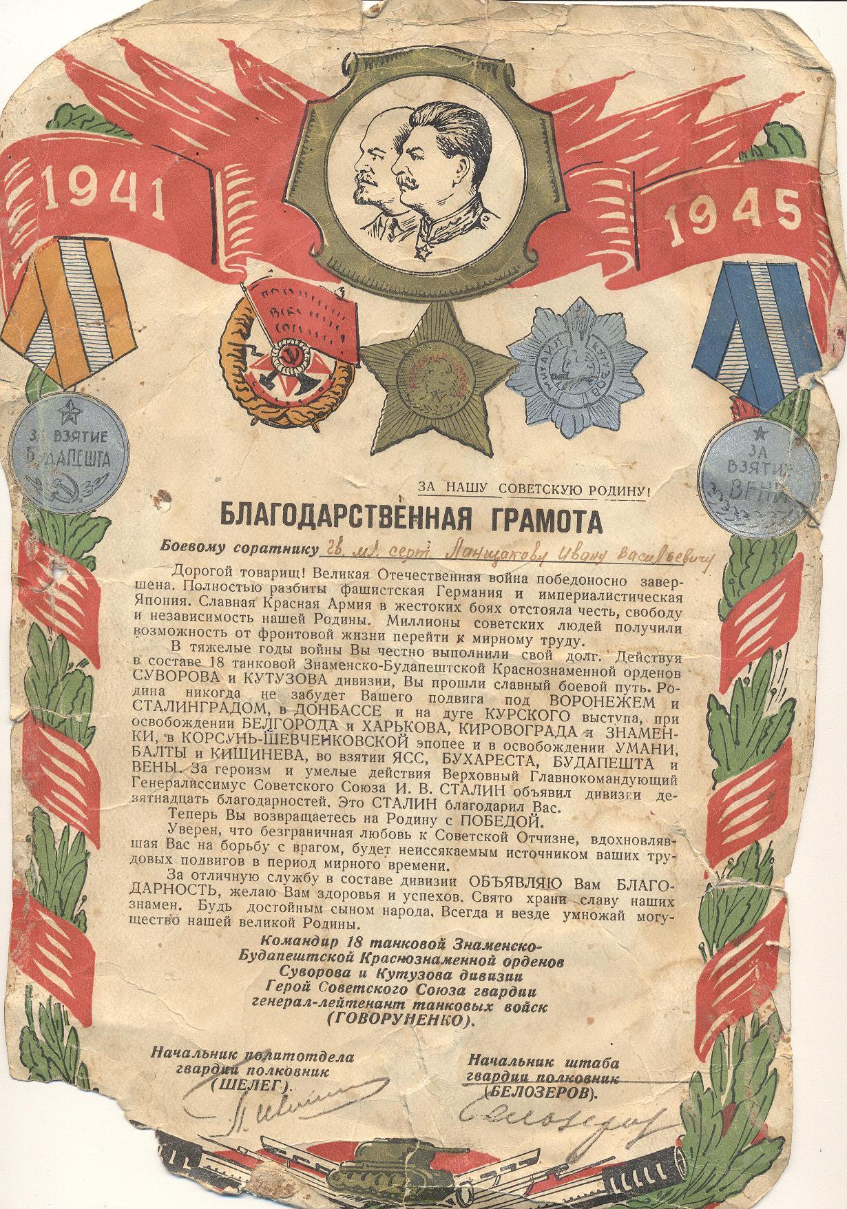 Много пришлось пройти Ивану Васильевичу трудных дорог во время войны. Трудности были на всех этапах: при освобождении Румынии, Венгрии, Австрии.