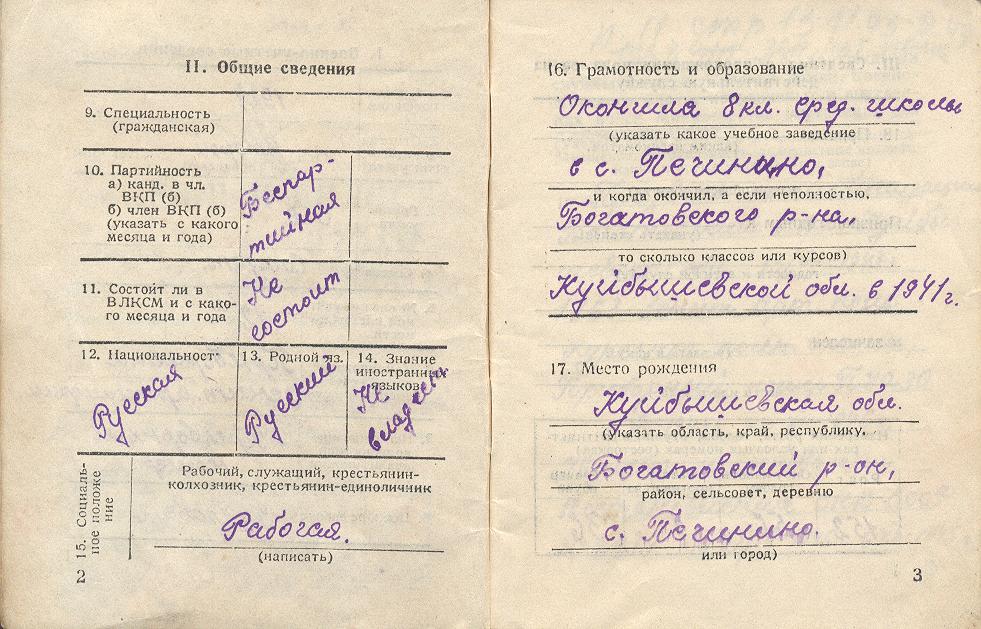 Материалы предоставила дочь Людмила Чичкова, с. Печинено Богатовского района Самарской области