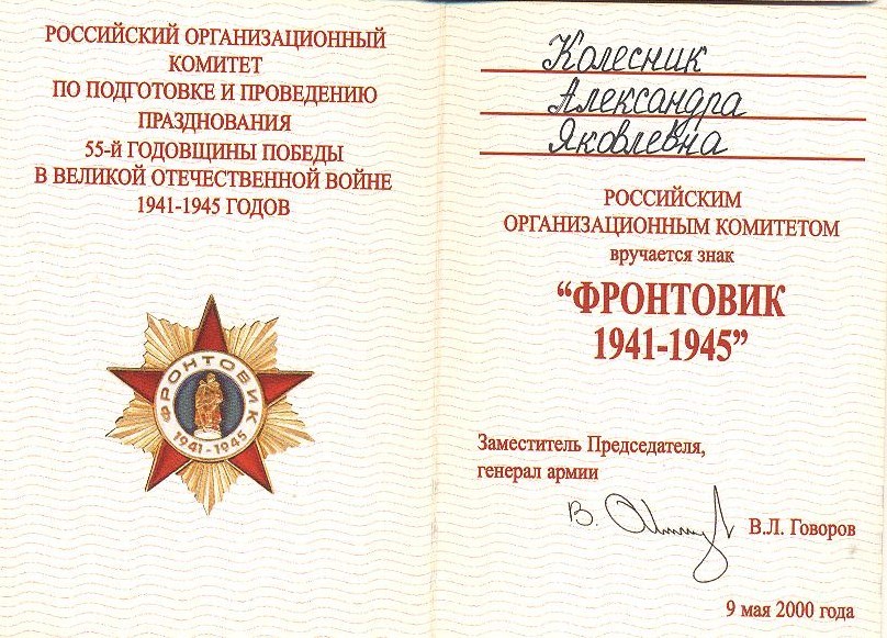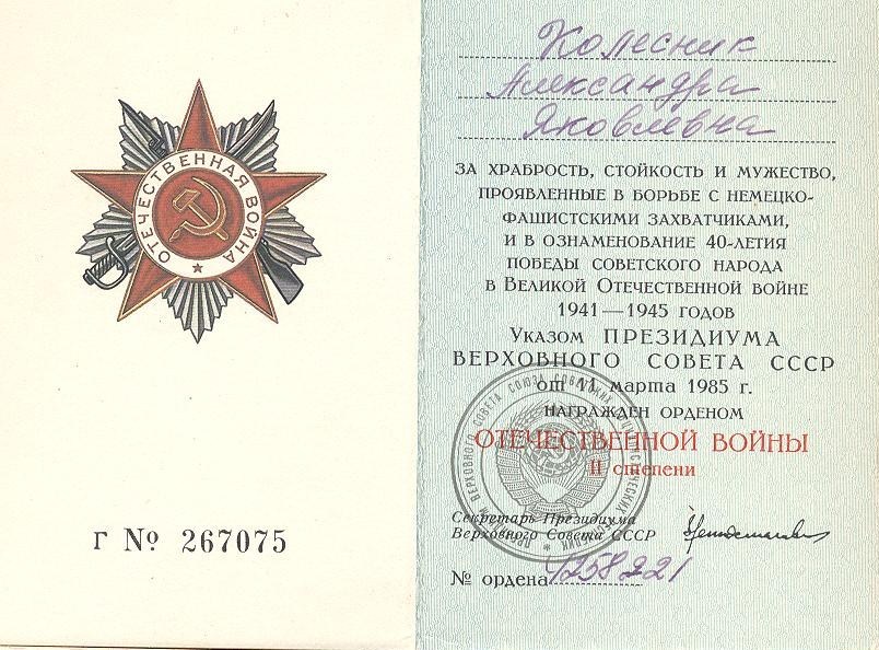 Колесник Александра Яковлевна
