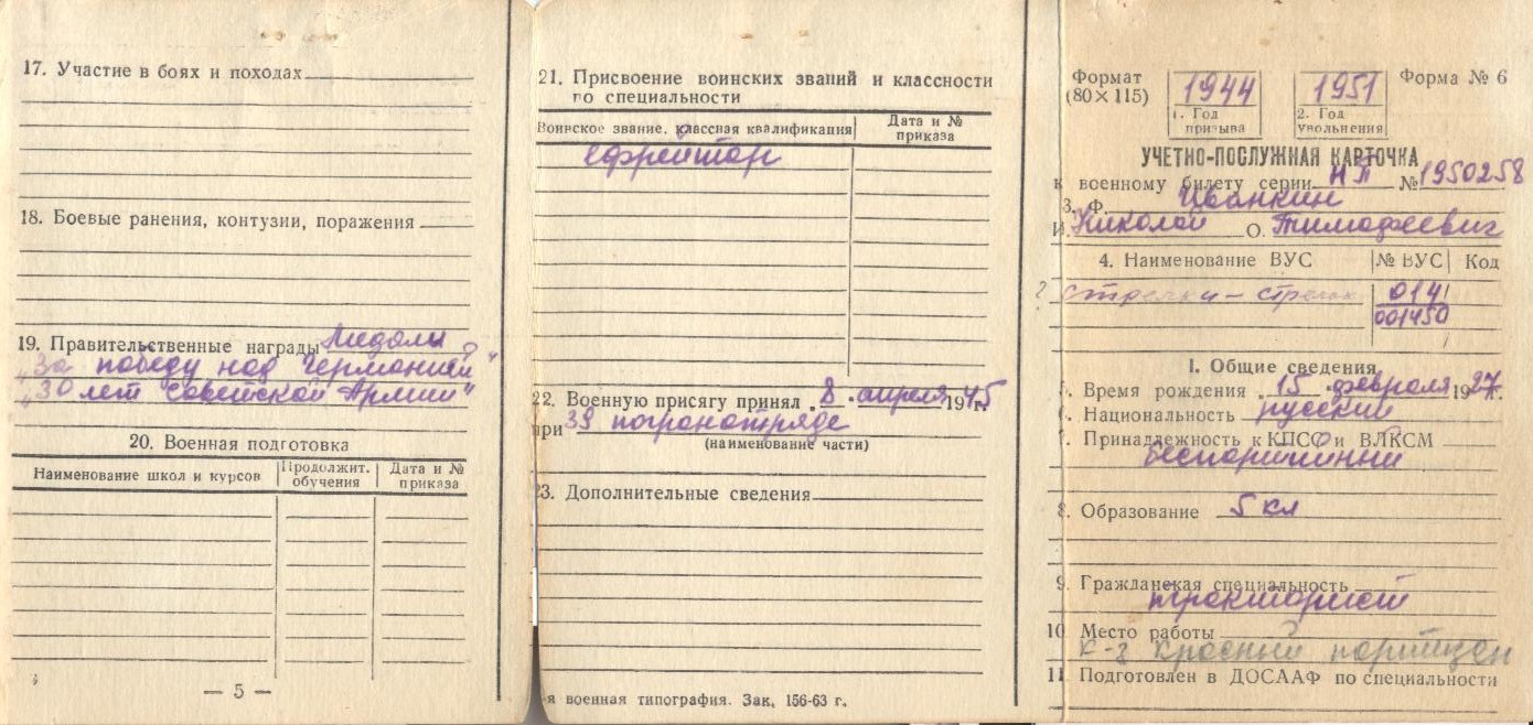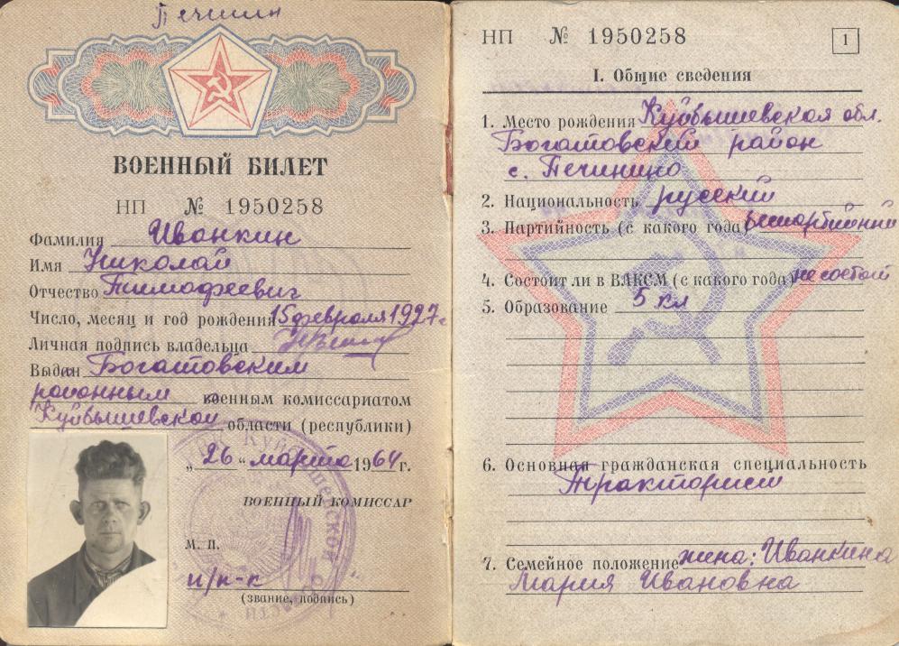 Материалы предоставила супруга Мария Ивановна Иванкина, с. Печинено Богатовского района Самарской области