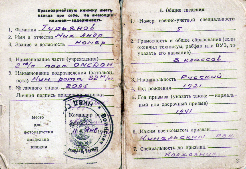Михаил Андреевич Гурьянов родился 15 апреля 1921 года. Окончил 8 классов. До войны работал в колхозе счетоводом.