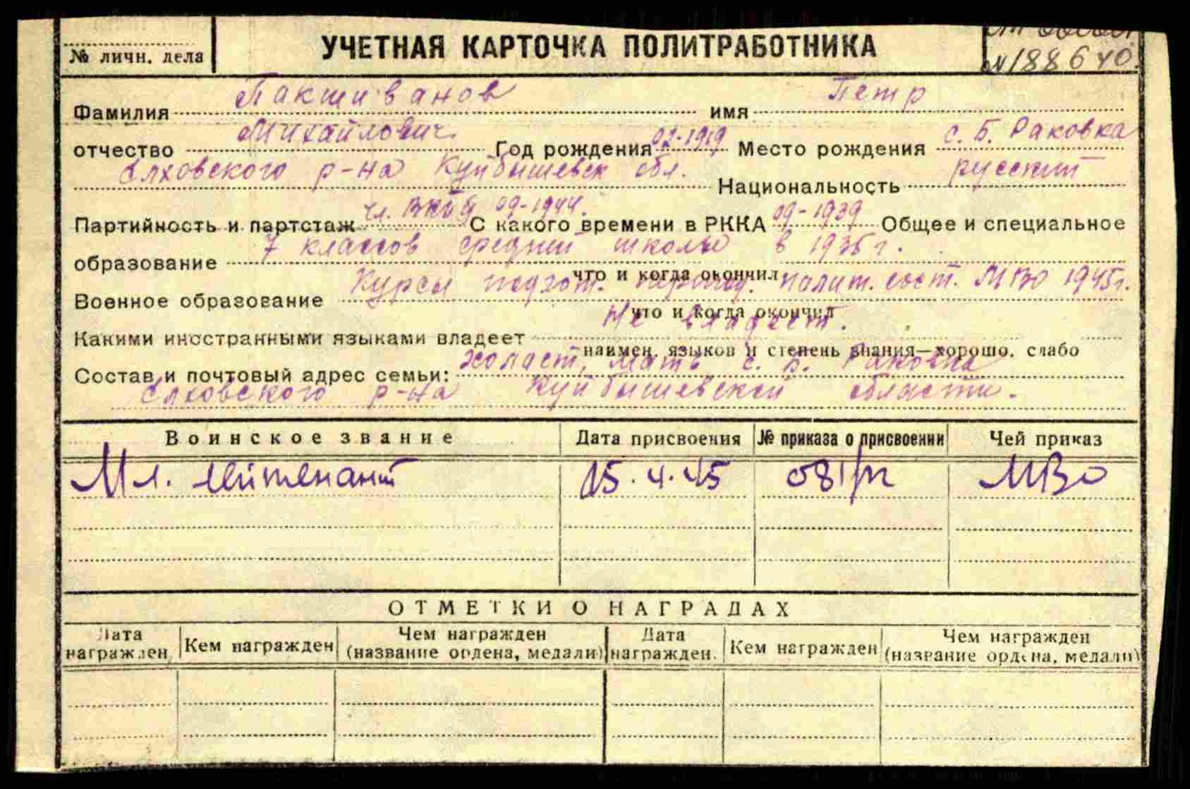 Информацию и документы предоставили правнук Покшиванов Антон Александрович и внучка Лидия Ивановна Кирьянова, с. Большая Раковка Красноярского района Самарской области