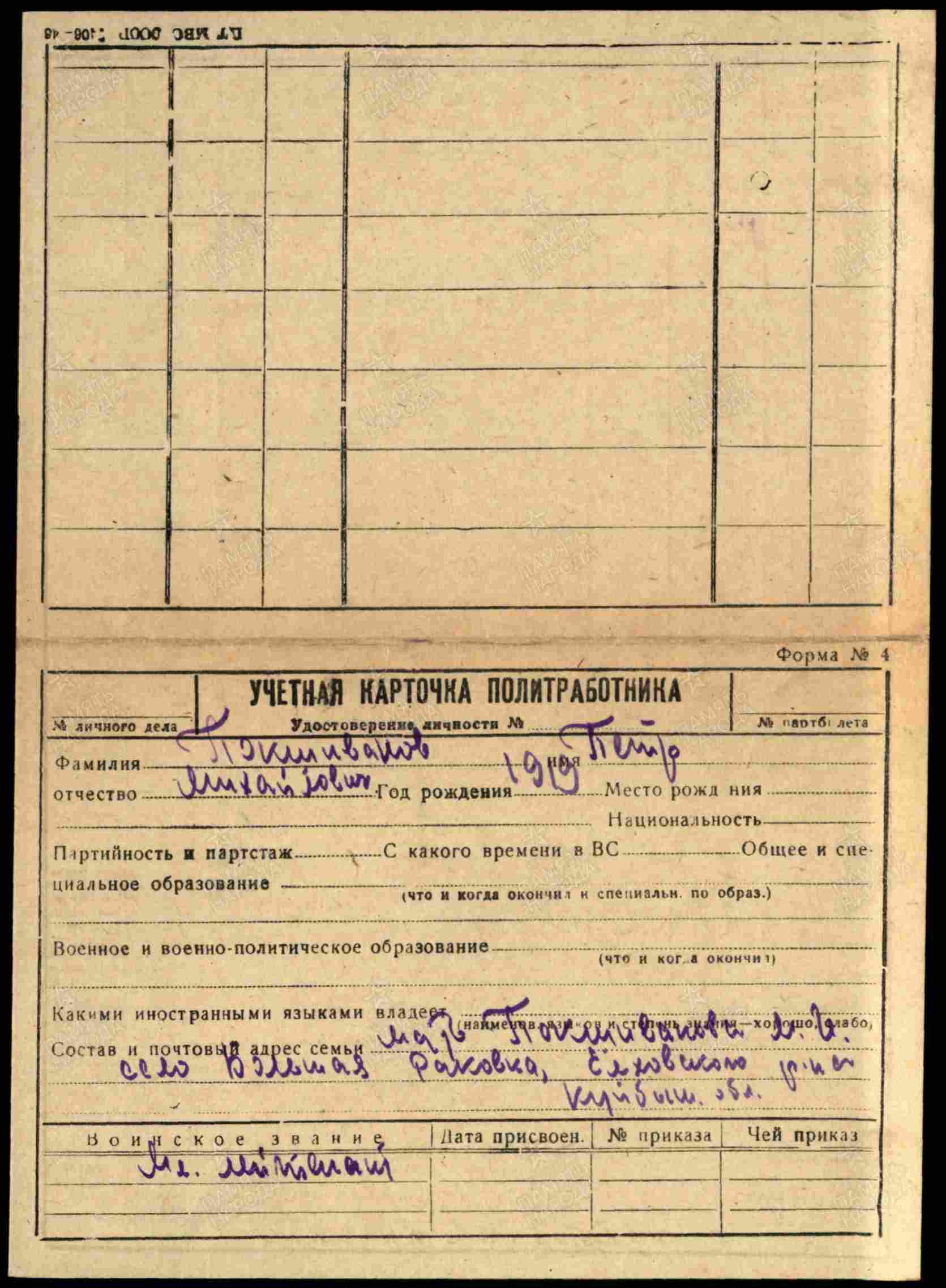 29 октября 1945 года Петр Михайлович Покшиванов погиб.