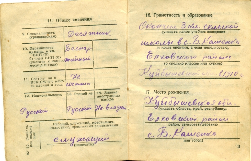 Материалы предоставил внук Петр Константинович Баринов, с. Большая Каменка Красноярского района Самарской области