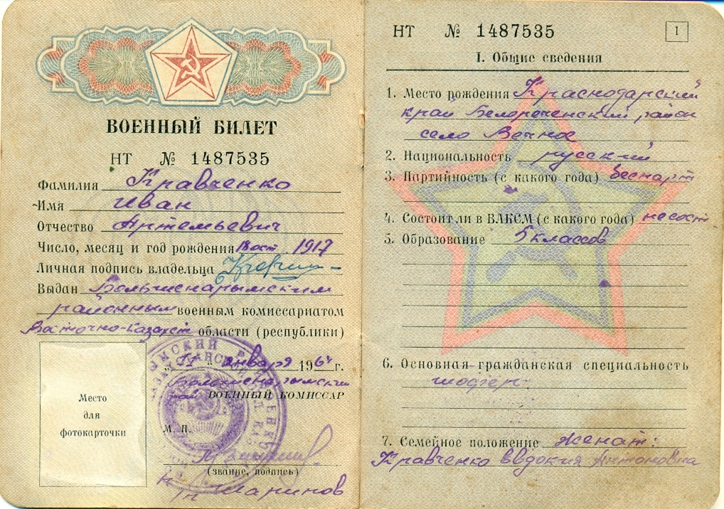 Материалы предоставил сын Николай Иванович Кравченко, п. Украинка Красноярского района Самарской области