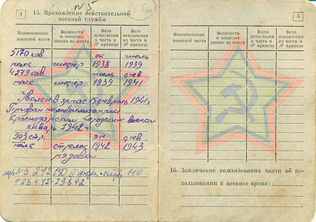 В 1938 г. был призван в Красную Армию, служил в кавалерийском полку шофером, в феврале 1941 г. был уволен в запас.