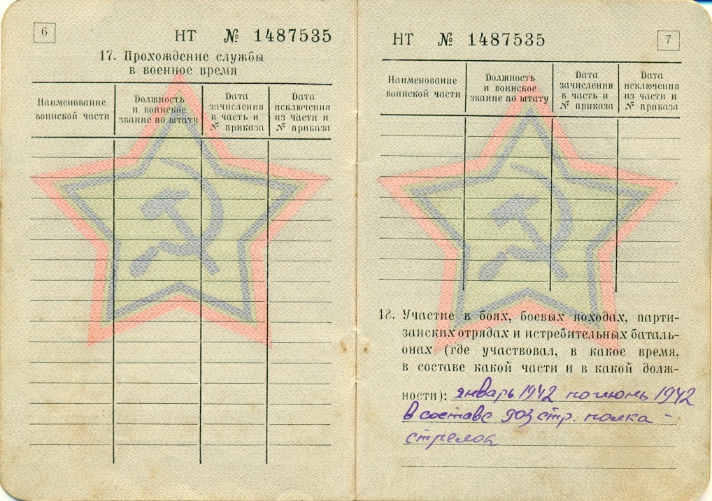 С января по июнь 1942 г. в составе 903-го стрелкового полка принимал участие в боевых действиях против фашистской Германии. Был награжден орденом Отечественной войны II степени.