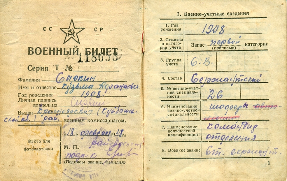 Из семейного архива сына Анатолия Кузьмича Сыркина, с. Хорошенькое Красноярского района Самарской области