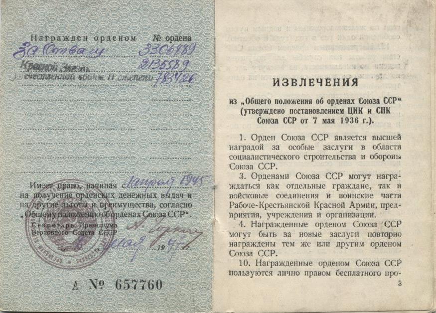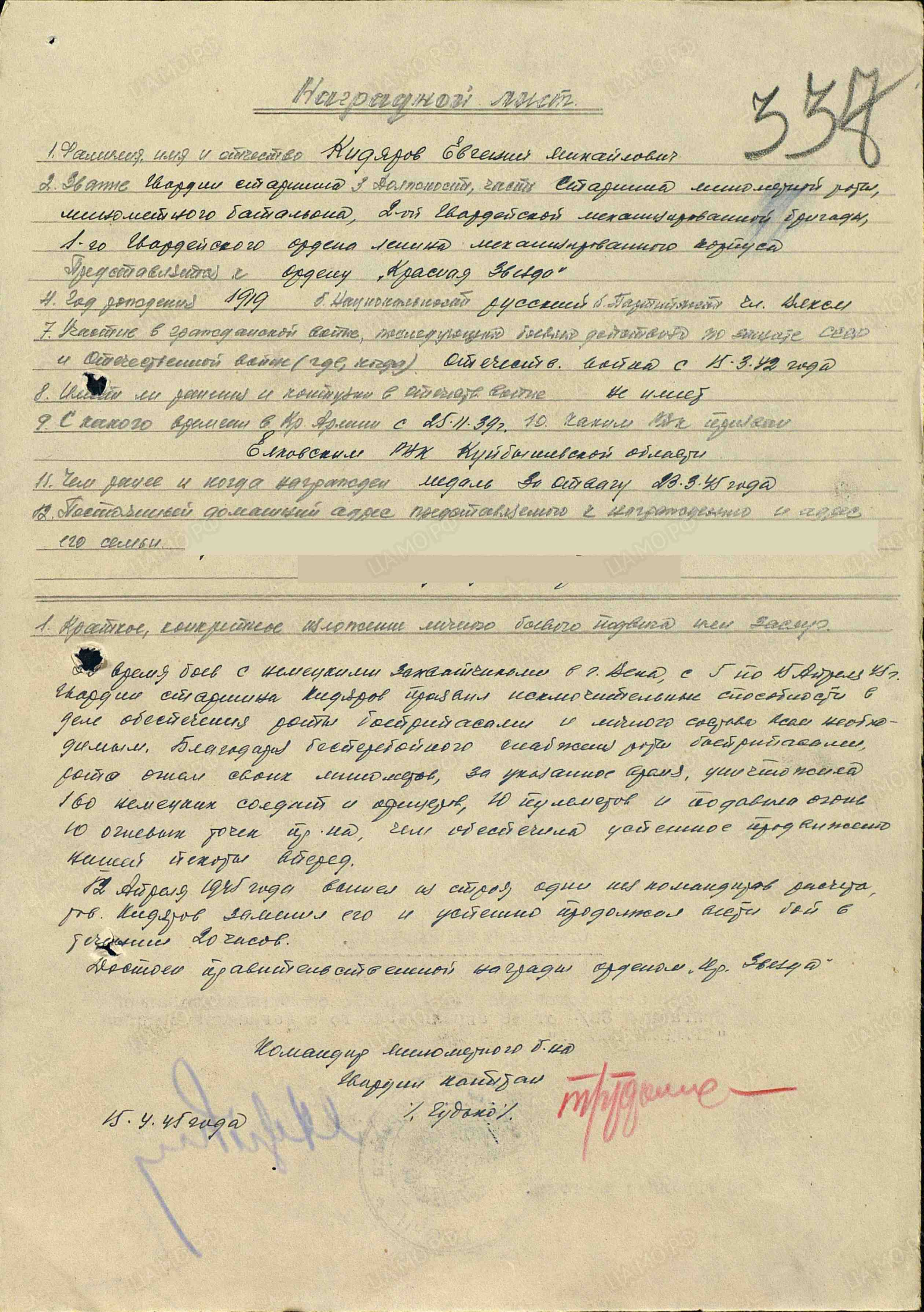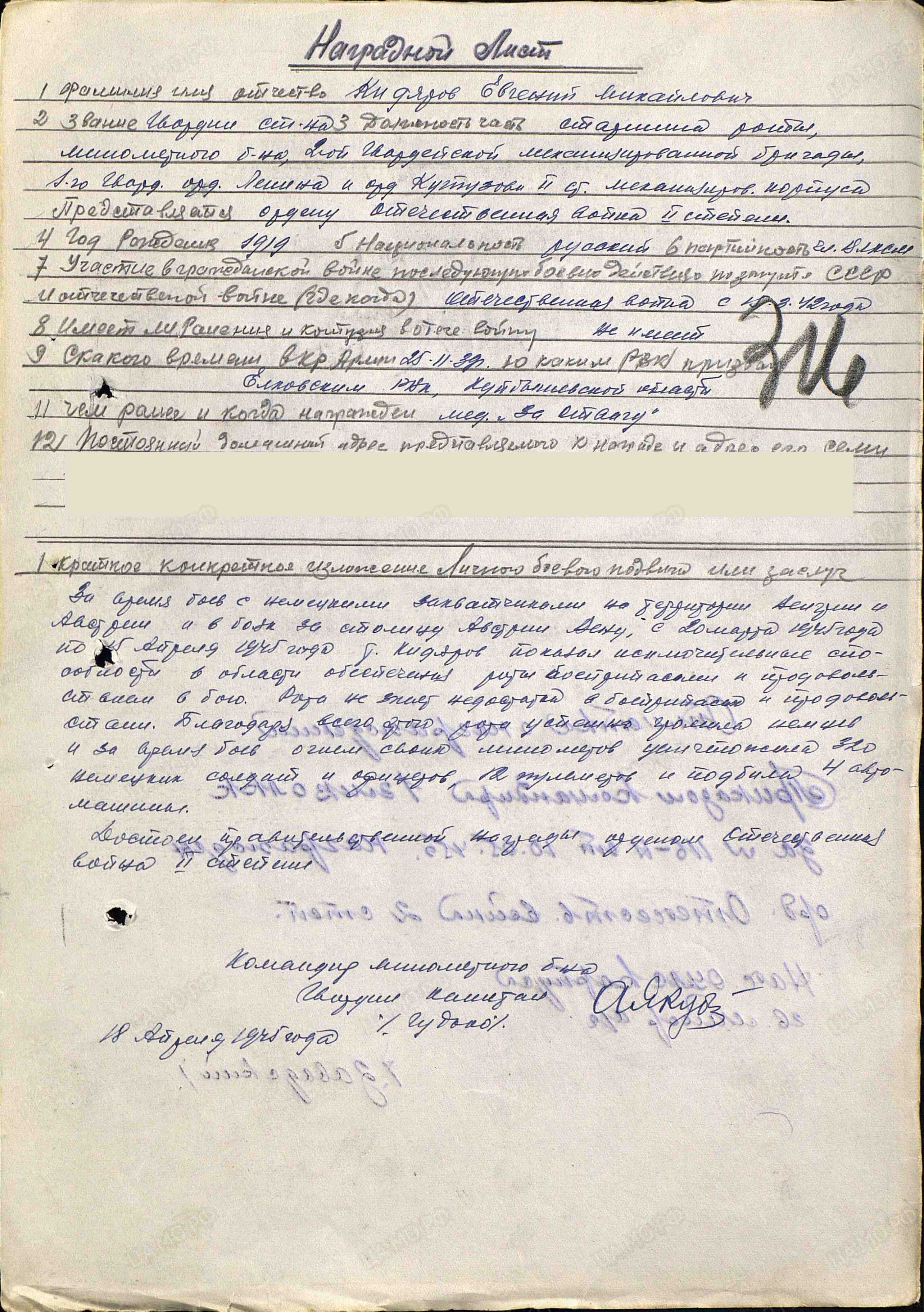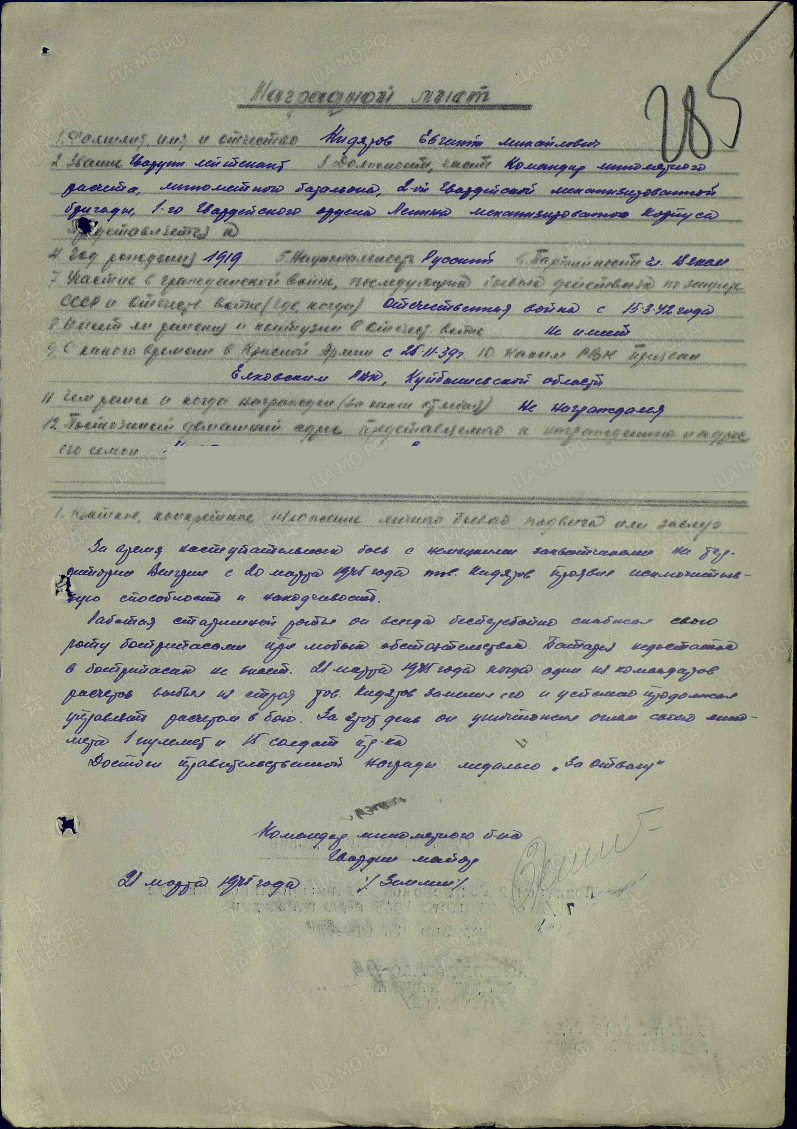 Наградные листы: