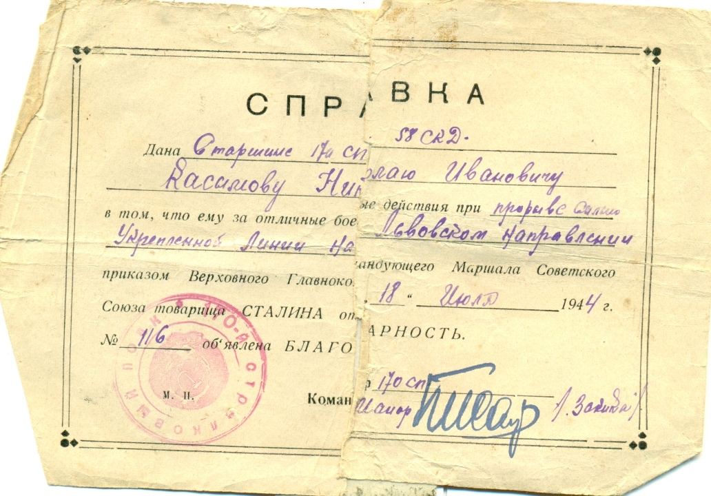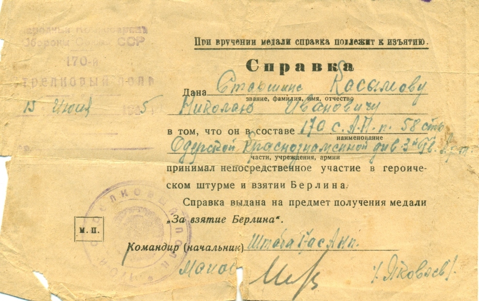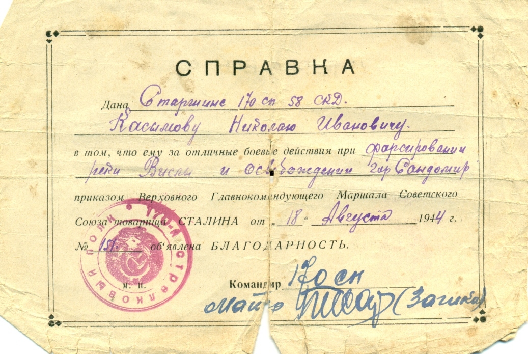 Материалы предоставил сын Сергей Николаевич Касымов, с. Большая Каменка Красноярского района Самарской области