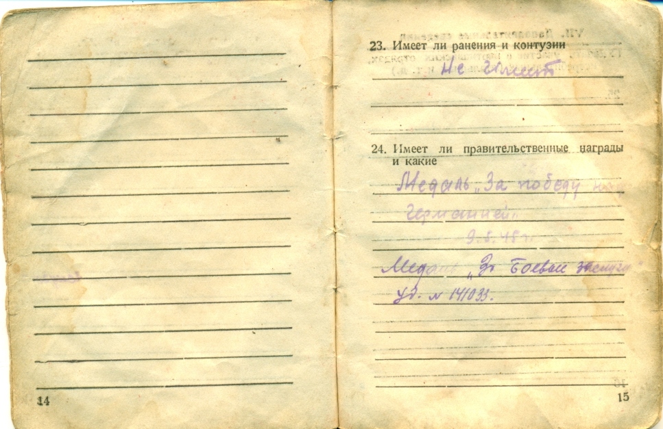 Петр Фролович демобилизовался 21 ноября 1945 г. Был награжден медалями «За боевые заслуги», «За Победу над Германией в Великой Отечественной войне 1941–1945 гг.»