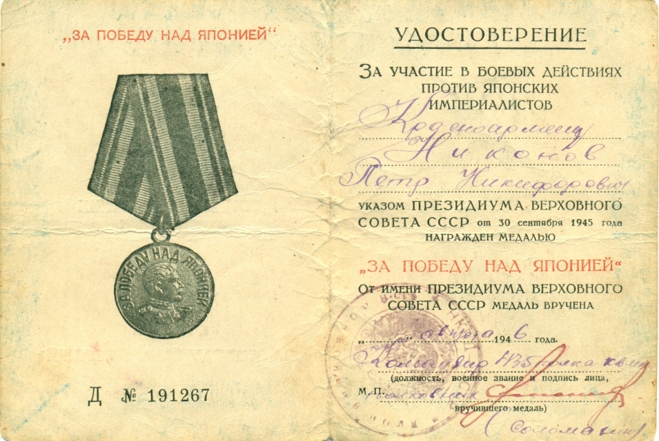 Петр Никифорович был награжден орденом Отечественной войны II степени, медалью «За победу над Японией».