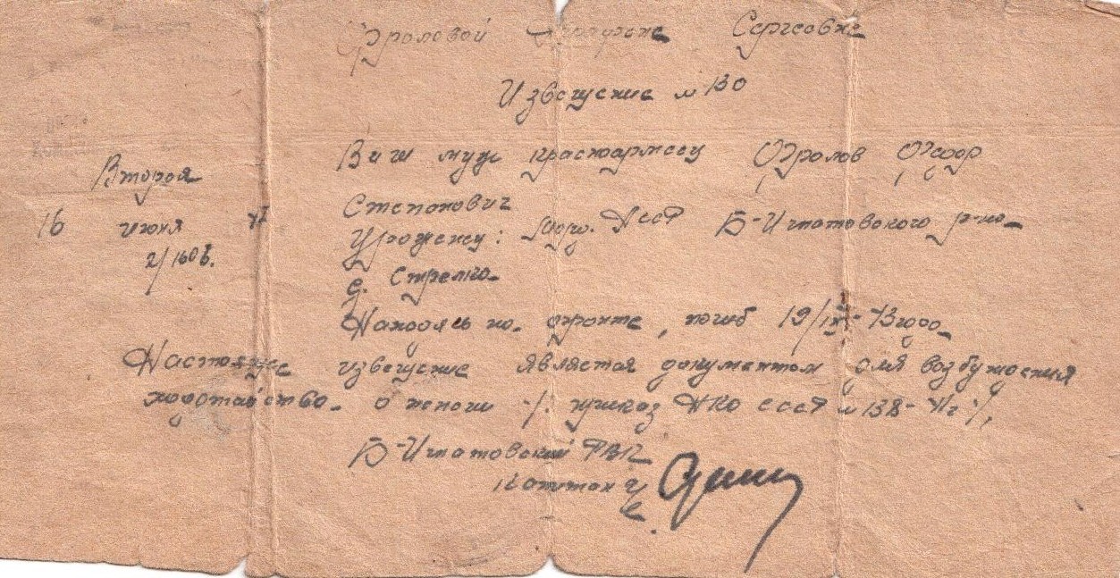 Федор Степанович погиб 19 сентября 1943 года на Волховском направлении.