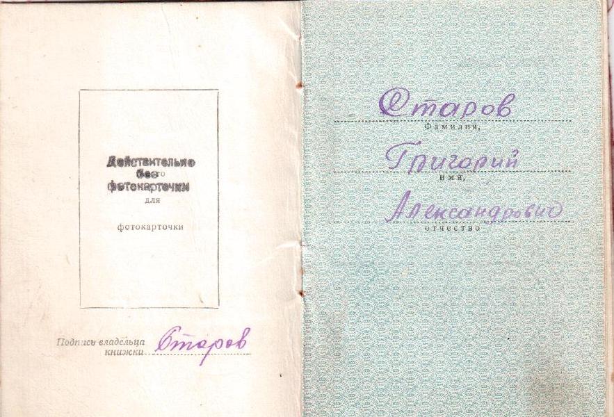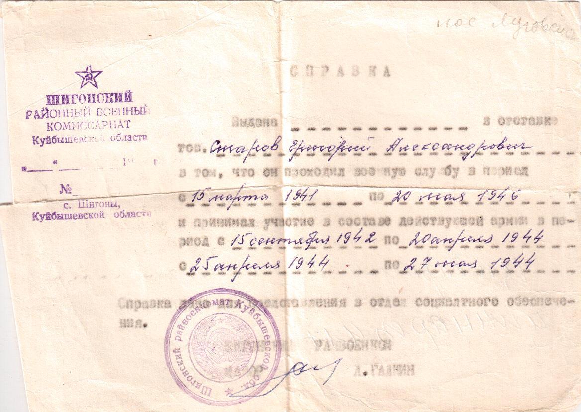 Из семейного архива сына В.Г. Старова, пос. Луговской Шигонского района Самарской области (сейчас проживает в г. Тольятти)
