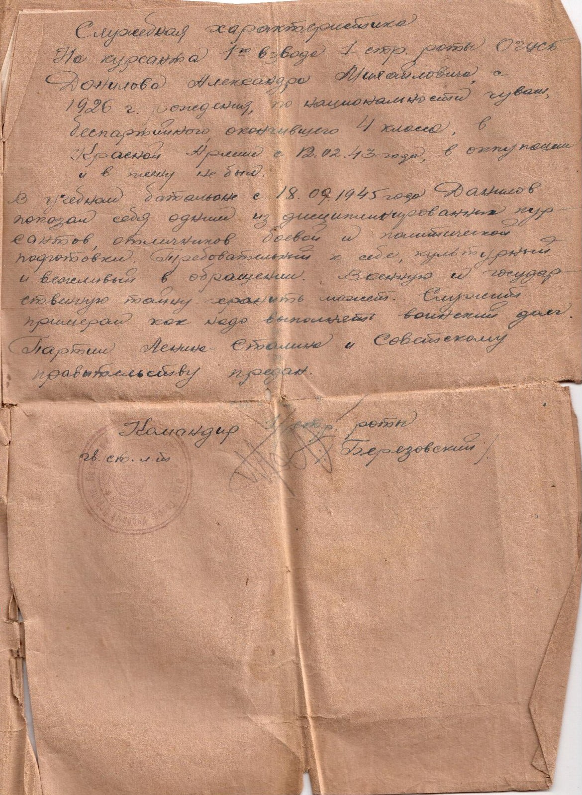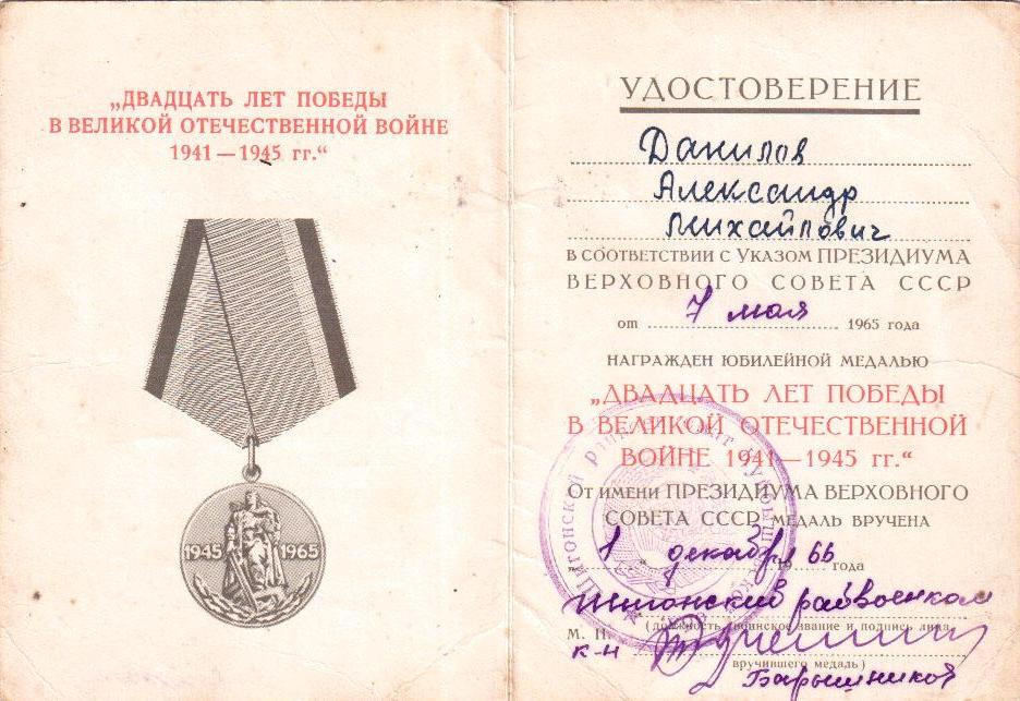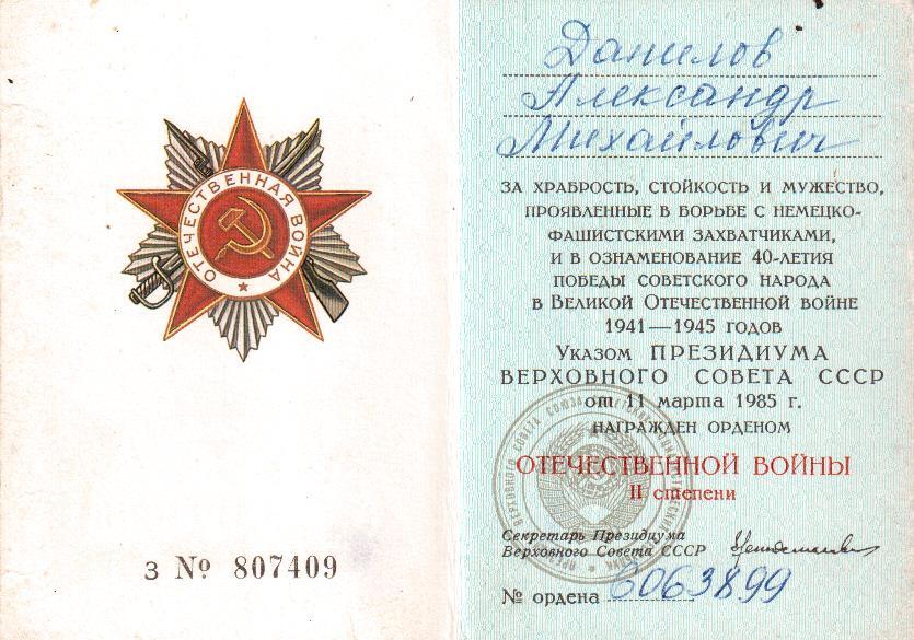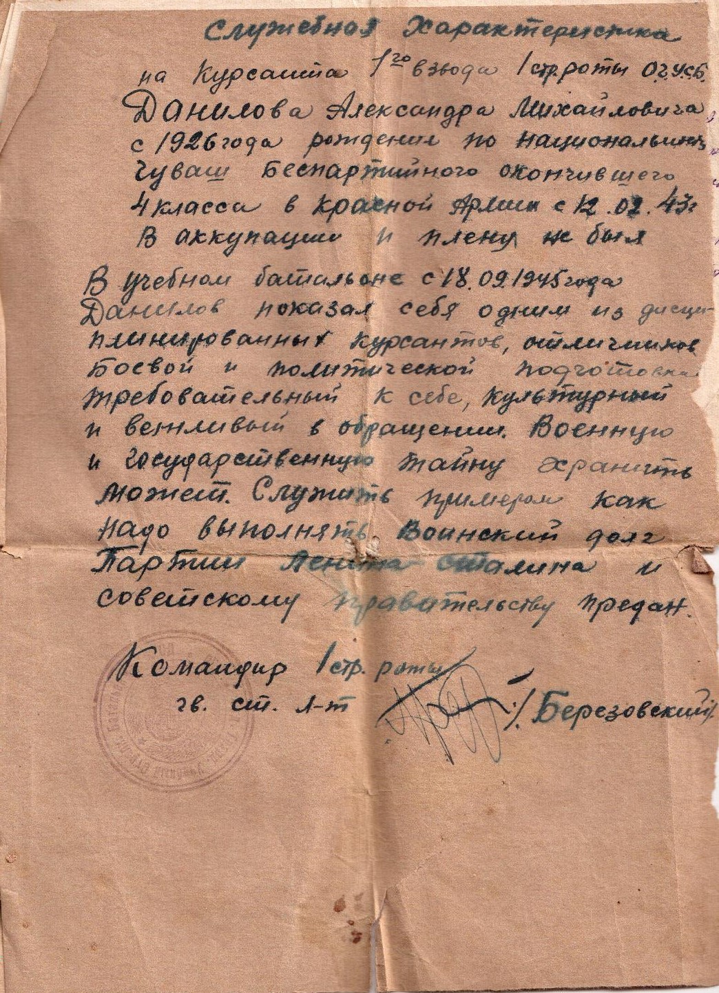 Александр Михайлович Данилов родился 26 августа 1926 года в селе Малячкино.