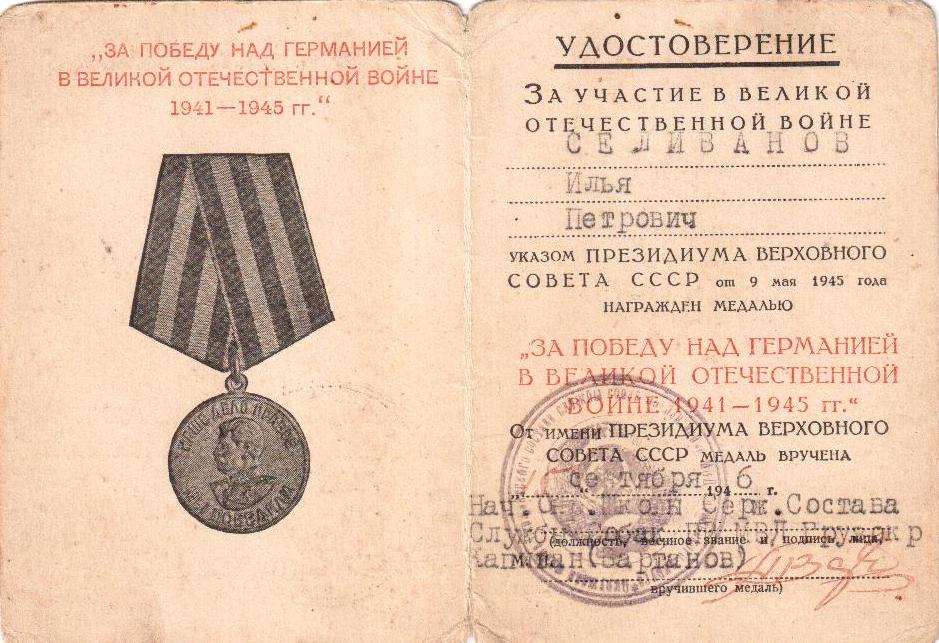 Илья Петрович Селиванов родился 29 июля 1925 года в селе Байдеряково.