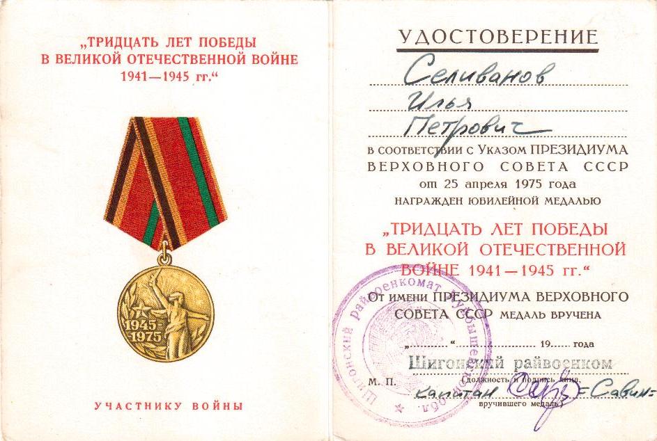 Умер Илья Петрович Селиванов в 1990 году в селе Шигоны.