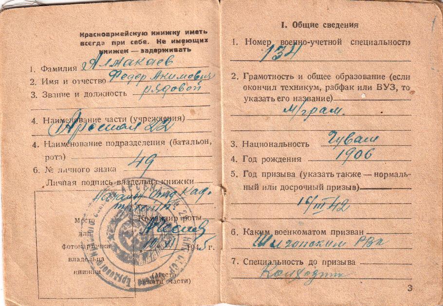 Федор Акимович Алмакаев родился в 1906 году в селе Тайдаково.