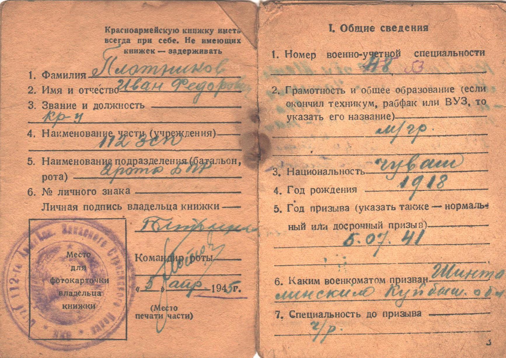 Иван Федорович Плотников родился в 1918 году в селе Четырла.