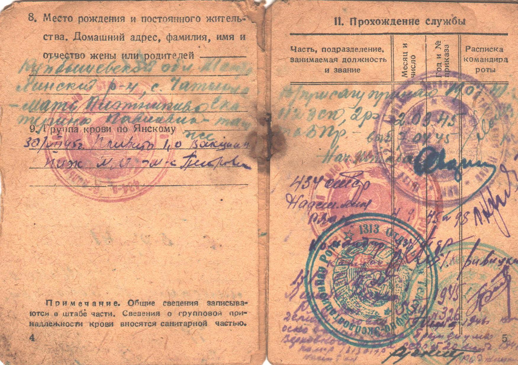 В Красную Армию был призван 22 августа 1938 г., служил до 14 сентября 1940 г. 6 июля 1941 г. был снова призван в армию .