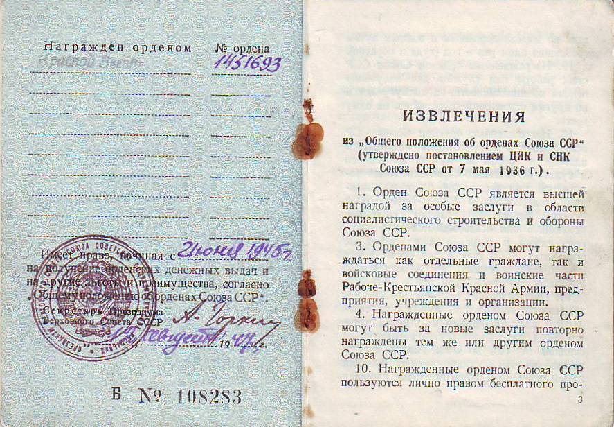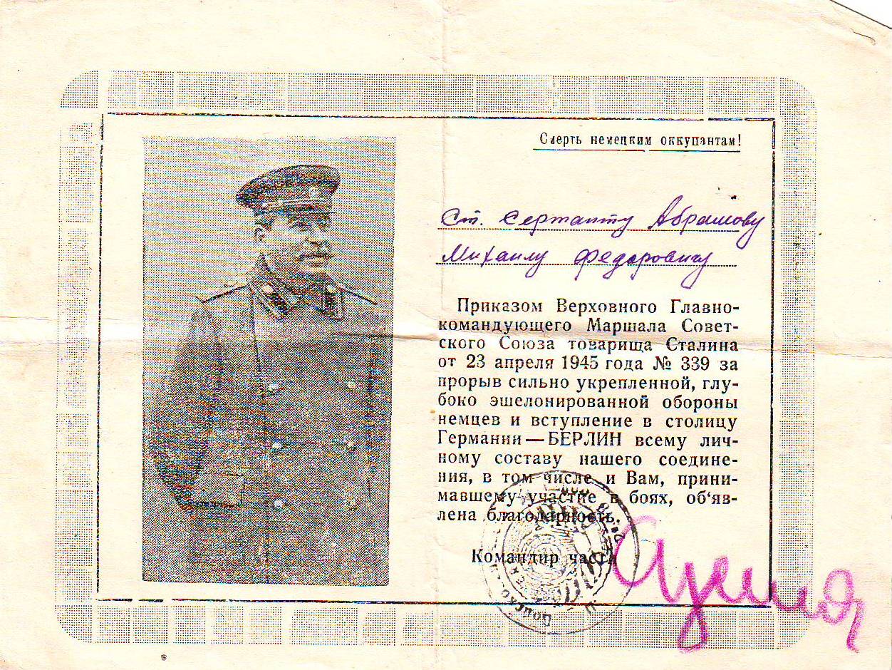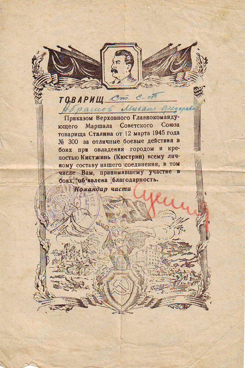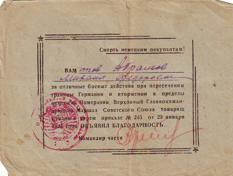 Михаил Федорович был награжден благодарностями от товарища Сталина, а также орденом Красной Звезды.