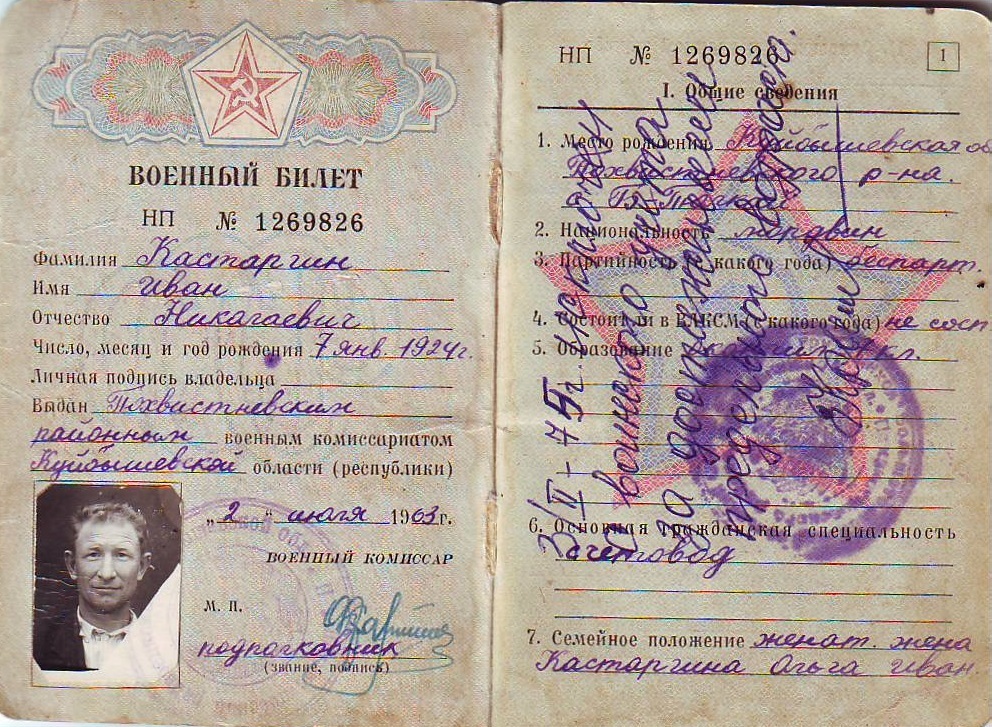 Из семейного архива снохи Марии Яковлевны Кастаргиной, с. Большой Толкай Похвистневского района Самарской области