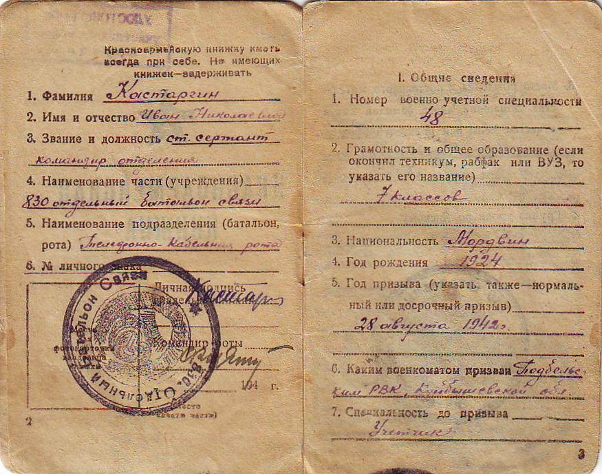 Иван Николаевич Кастаргин родился 7 января 1924 года в селе Большой Толкай.