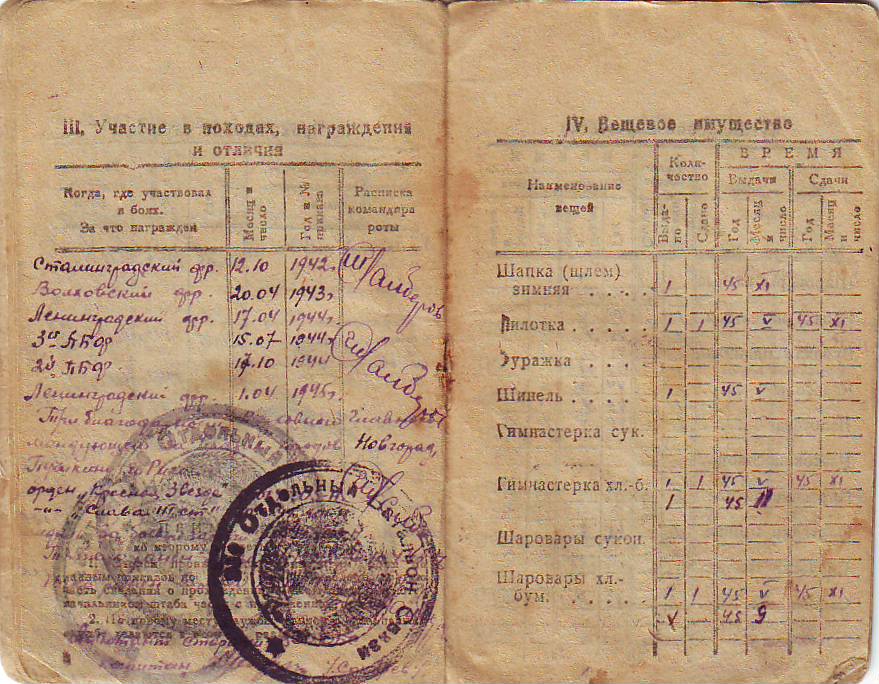 Воевал с 1942 года по 1945 год. Служил в звании старшего сержанта, в должности командира отделения. 6 октября 1943 года Иван Николаевич был тяжело ранен, 17 марта 1944 года – ранен в ногу. С честью выстоял ад сражений в Сталинграде.