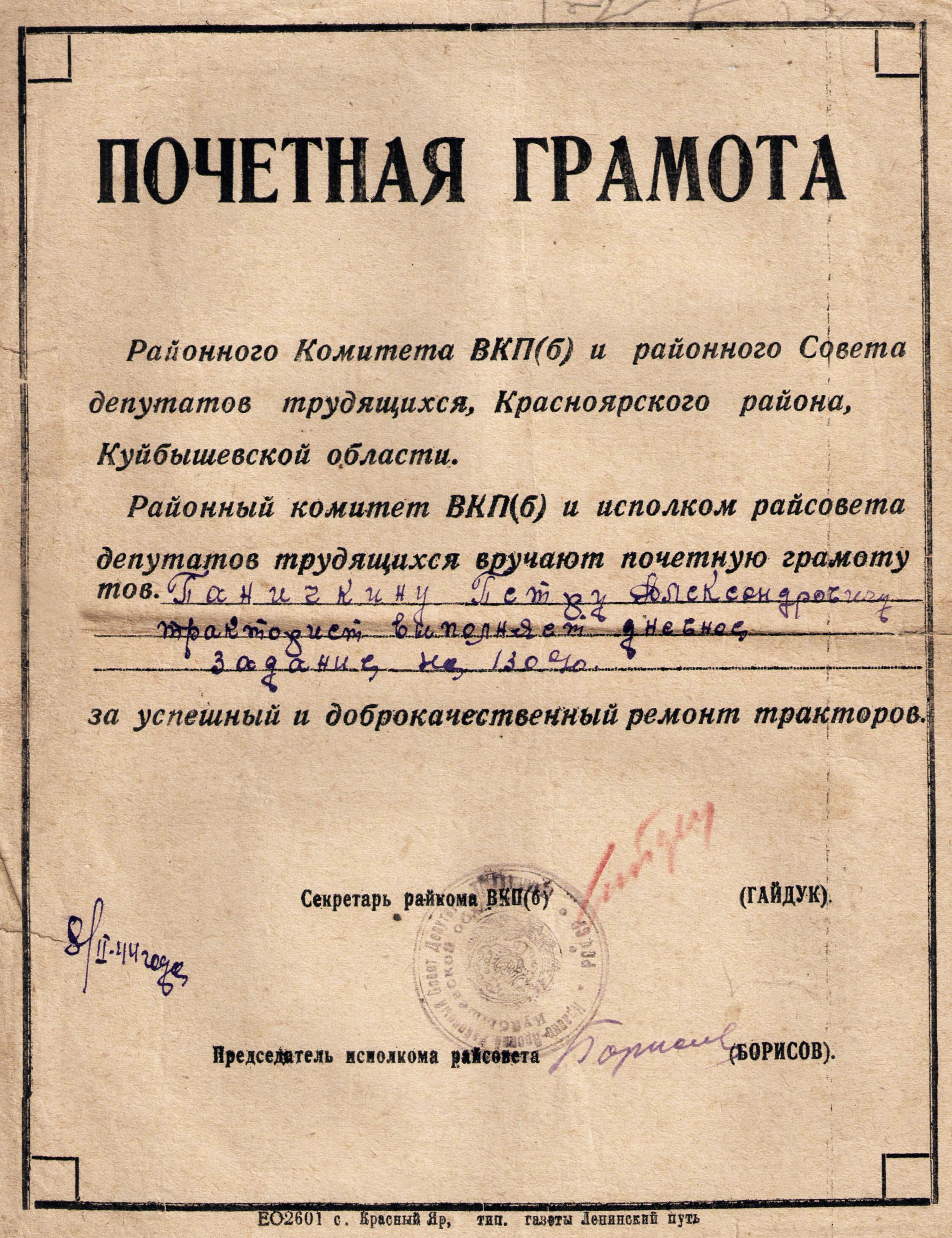Из семейного архива внука Сергея Александровича Паничкина, с. Хорошенькое Красноярского района Самарской области