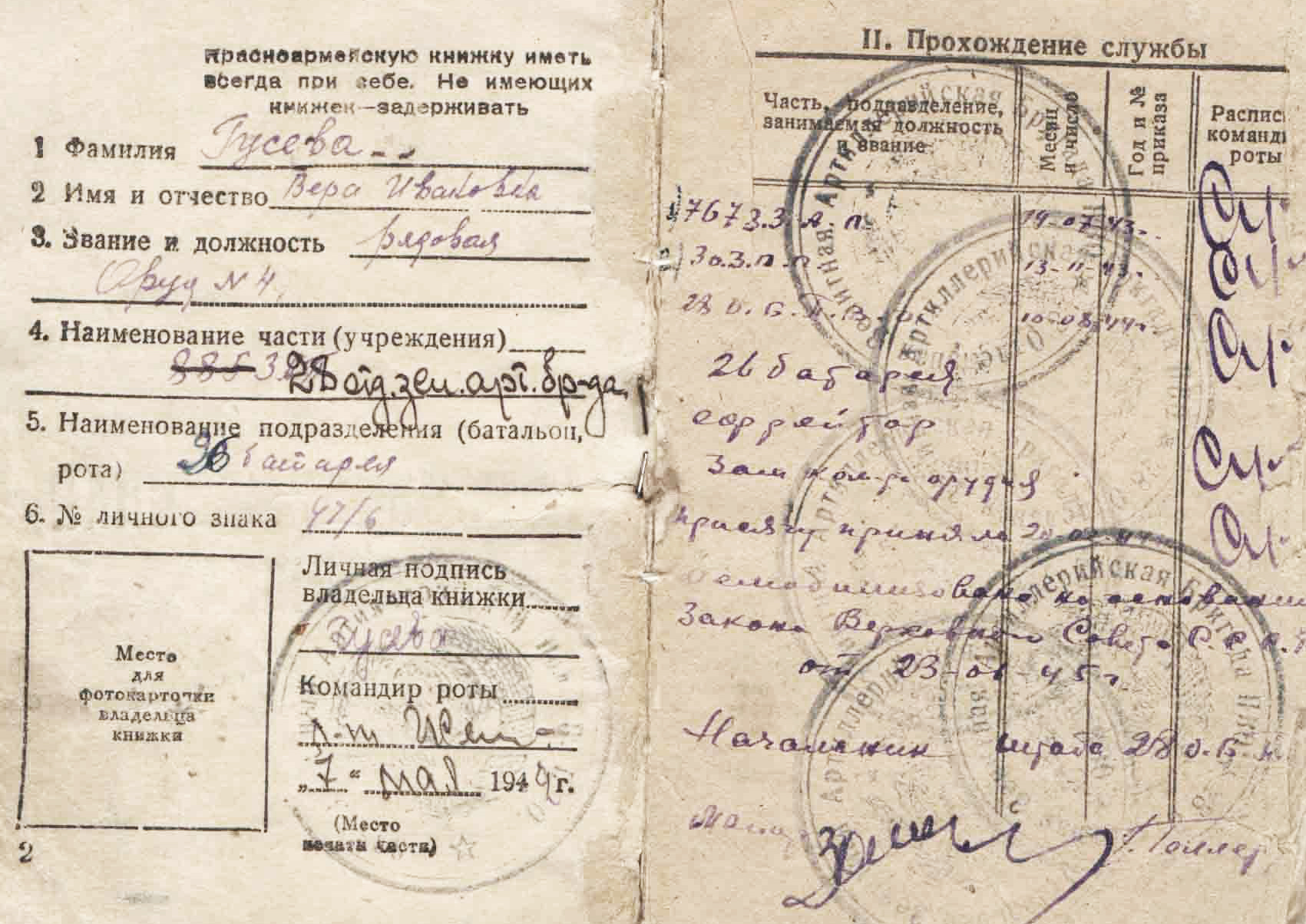 Домой Вера Ивановна вернулась в 1946 г., переехала в г. Сызрань. Работала на заводе пищевых кон-центратов заместителем начальника отдела кадров.