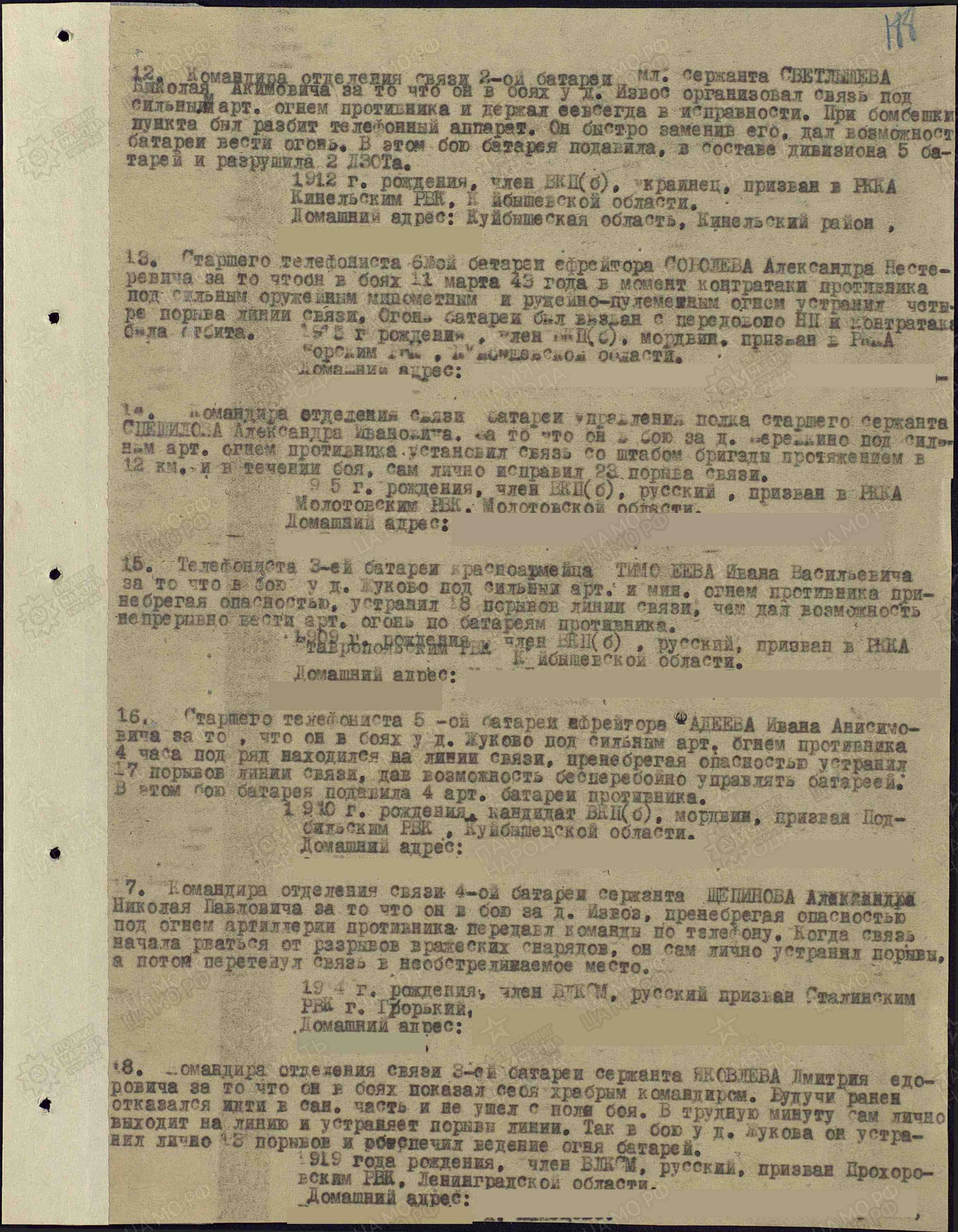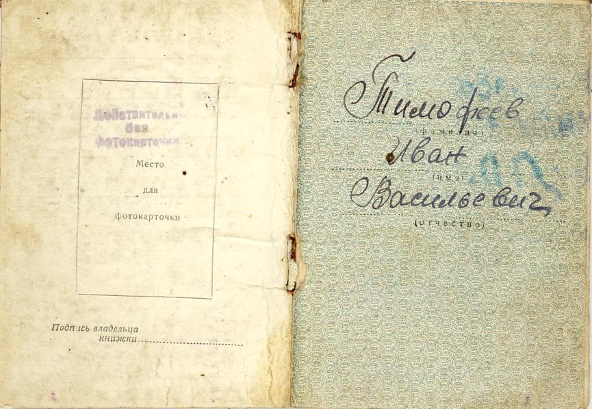 Родился 3 октября 1909 г. в с. Лопатино Ставропольского района Куйбышевской области в многодетной (6 детей) семье крестьянина. Закончил 4 класса школы. В 1928 г. женился. До войны родились 6 детей, после войны еще 3. Работал шофером. 24 июня 1941 г. призван по мобилизации на фронт Ставропольским РВК Куйбышевской области. 26 декабря 1941 г. принял присягу и служил в 40-м армейском инженерном батальоне во 2-й роте сапером в звании ефрейтор, в 3-й батарее 573-го артиллерийского полка. Демобилизовался в октябре 1945 г., вернулся на родину. Был избран депутатом совета района. Умер 23 августа 1958 г. Награды: орден Красной Звезды, медали «За оборону Ленинграда», «За оборону Советского Заполярья», две медали «За отвагу», медаль «За победу над Германией в Великой Отечественной войне 1941-1945 гг.». Информация сайта podvignaroda.ru: Наградить медалью «За отвагу» телефониста 3-й батареи красноармейца Тимофеева Ивана Васильевича за то, что в бою у д. Жуково под сильным артиллерийским и минометным огнем противника, пренебрегая опасностью, устранил 18 порывов линии связи, чем дал возможность непрерывно вести артиллерийский огонь по батареям противника (наградной лист от 3.04.1943 г.). Шофер-красноармеец Тимофеев в наступательных боях на подступах к Риге всегда своевременно доставлял боеприпасы на огневые позиции, неоднократно подвергаясь при этом опасности для жизни от артиллерийско-минометного обстрела противником путей подвоза. В период совершения маршей шофер-красноармеец Тимофеев соблюдал маскировку и исключительную дисциплину движения. В условиях лесисто-болотистой местности, по труднопроходимым дорогам являлся первым инициатором по прокладке гатей, чем обеспечивал своевременное занятие огневой позиции. За проявленные образцы выполнения воинского долга, мужества и личную отвагу достоин правительственной награды – ордена Красной Звезды (наградной лист от 22.10.1944 г.).