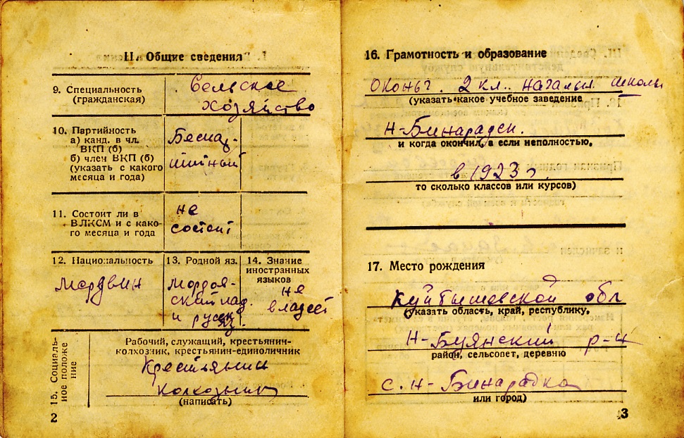 Из семейного архива дочери, Князькиной Антонины Васильевны, с. Новая Бинарадка Ставропольского района Самарской области