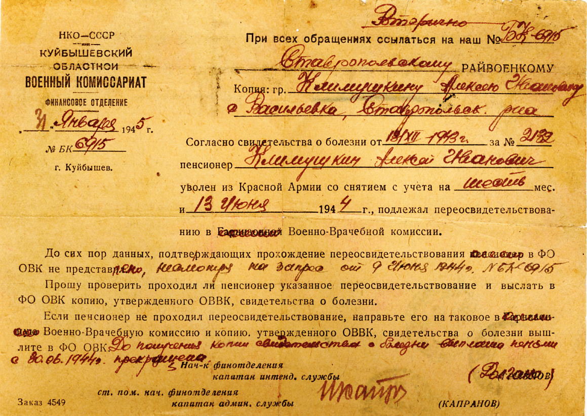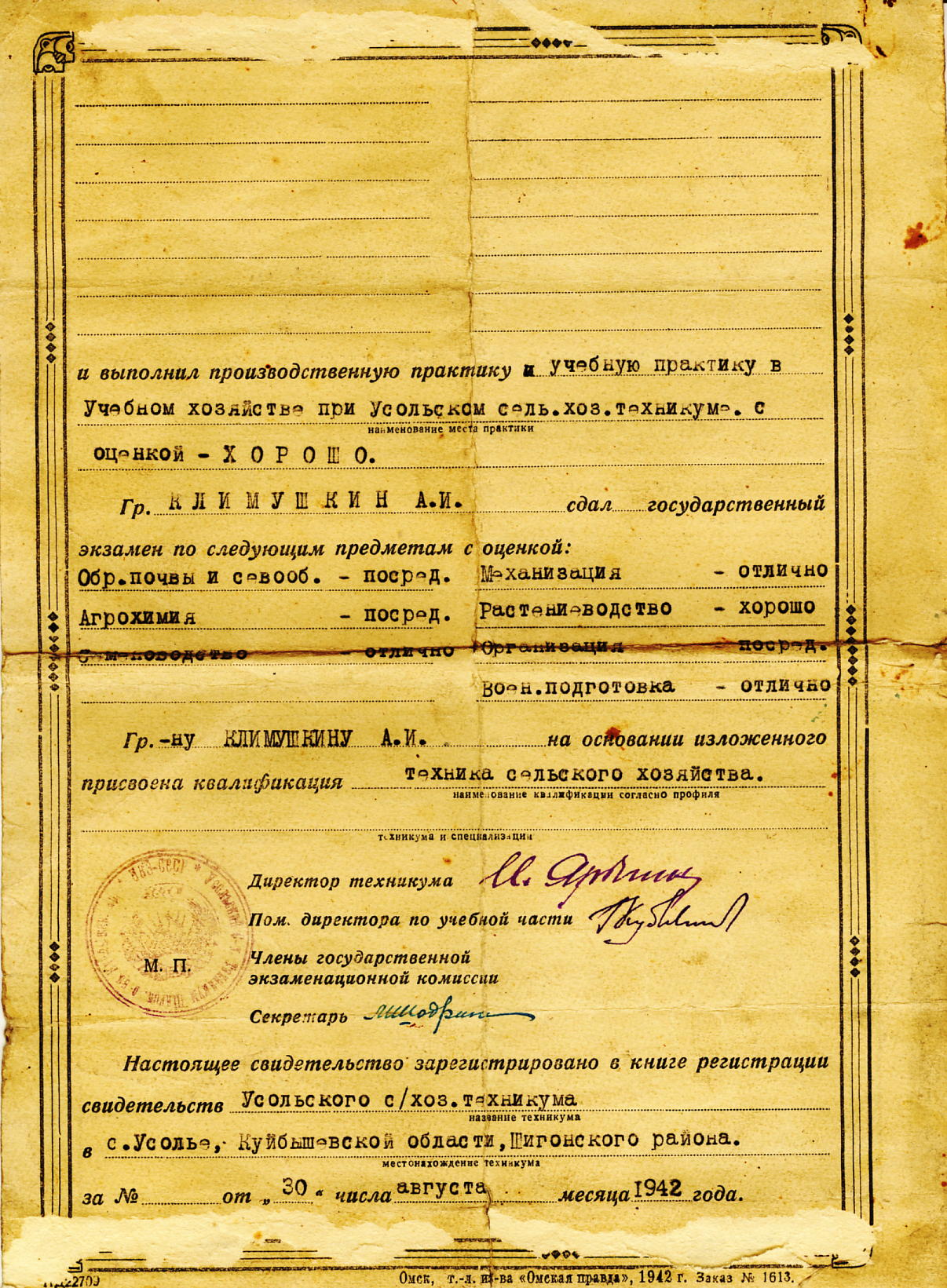 Родился 25 февраля 1924 г. в с. Васильевка Ставропольского района Куйбышевской области в многодетной крестьянской семье (5 детей). Он рано стал помогать родителям: гонял в ночное лошадей, сено косил, сгребал в стожки, с 14 лет ходил за плугом, ухаживал за скотиной, помогал выполнять и по дому, по хозяйству любую работу. После окончания 7 классов, в 1939 г. поступил в Усольский сельскохозяйственный техникум, закончил его в августе 1942 г. 18-летний Алексей Иванович получает направление во 2-е пехотное училище в Куйбышеве. Учеба шла ускоренным курсом. В июне 1943 г. он уже на Воронежском фронте – командир взвода 136-го пехотного полка 42-й гвардейской дивизии 5-й гвардейской армии в звании младший лейтенант. Летом 1943 г. бои на Орловско-Курском направлении. Взвод Климушкина А.И. держит оборону от фашистских танков под Прохоровкой и Томаровкой, идет в наступление на села Уды и Довжик, где засели гитлеровцы. Горит, дымится земля под тысячами бомб и снарядов. Немецкие танки на некоторых участках прорвали оборону, сравняли с землей окопы, где держали оборону пехотинцы. Но из заваленных окопов поднима-лись Алексей Иванович и его однополчане, оглохшие от взрывов, раненные, конту-женные, шли в атаку, подбивали немецкие «Тигры». Алексей Иванович был тяжело ранен, отправлен в Тамбовский госпиталь, затем его эвакуировали в г. Уральск. В декабре 1943 г. военно-врачебной комиссией признан негодным к несению боевых действий на 6 месяцев: искалечены руки. Для продолжения лечения Алексея Ивановича направляют в родное с. Васильевку. Но война еще не кончилась, и Алексей Иванович не может сидеть без дела. С еще незалеченными руками он в июне 1944 г. поступает на работу в Ставропольский районный земельный отдел агрономом-семеноводом, затем работает участковым агрономом Нижне-Санчелеевской МТС при с. Васильевка. После переосвидетельствования врачебной комиссии 17 января 1945 г., срок негодности к несению воинской службы продлен до 1 мая 1946 г. На фронт Алексей Иванович уже не попал. В 1952 г. - он председатель колхоза им. Горького в с. Нижнее Санчелеево, затем главный агроном колхоза им. Кирова (после объединения колхозов). С сентября 1958 г. – директор совхоза им. Менжинского (с. Ташелка) до самого ухода на пенсию – 1985 г. За трудовую деятельность награжден многими правительственными наградами. В 2004 г. в с. Ташелка на доме, где жил Климушкин А.И., по адресу улица Менжинского, 10, открыта мемориальная доска: «В этом доме жил фронтовик, заслуженный работник сельского хозяйства России, директор совхоза Климушкин Алексей Иванович (25.02.1924-14.07.1988)».