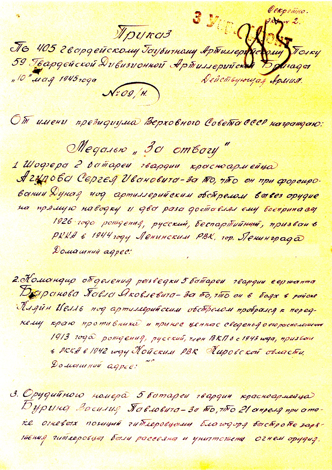 Родился 20 июня 1925 г. в с. Мусорка Ново-Буянского (ныне Ставропольского) района Куйбышевской области. В 1940 г. окончил 7 классов Мусоркской школы. В январе 1943 г. Ново-Буянский РВК призван на фронт. По июнь 1943 г. Василий Павлович проходил обучение в Сызранском техническом училище Куйбышевской области. Не доучился: вышло постановление Государственного Комитета Обороны о формировании воздушно-десантных бригад, где значилось: «полностью укомплектовать не позднее 20 июня 1943 г. вновь формируемые бригады по специальностям: б) рядовым составом за счет курсантов пехотных, пулеметно-минометных, артиллерийско-противотанковых, связи и инженерных военных училищ, сокращаемых по постановлению ГОКО №3282 от 2 мая. Отбор произвести из курсантов военных училищ с подготовкой не менее 3-х месяцев и годных для службы в воздушно-десантных войсках». Так была сформирована 13-я гвардейская воздушно-десантная бригада, куда был зачислен красноармеец Бурин Василий Павлович. Она дислоцировалась на ст. Щелково, Ярославской ж.д. (Московская область), где бойцы проходили срочные курсы по прыжкам с парашютом, навыкам боя и т.д. А затем – фронт. С 27 июля 1943 по январь 1945 гг. он воевал в 13-й гвардейской воздушно-десантной бригаде рядовым стрелком. Участвовал в боях на Кольском полуострове на защите Мурманска, где находились база Северного морского флота, незамерзающий порт, выход на Кировскую железную дорогу. Для немцев и финнов это были стратегические объекты, которые они стремились захватить. Кроме контратак вплоть до осени 1944 г. не прекращались бомбардировки вражеской авиацией. Воевать приходилось в сложных природных условиях: то каменистая местность, то болота. Передвигались по пояс в грязи, ночевали на холодной земле. Здоровье было основательно подорвано. Василий Павлович вспоминал, как однажды при форсировании реки осколком снаряда пробило катер, в котором переправлялись бойцы. Многие погибли в волнах холодной быстрой реки. Василий Павлович добрался до берега и смог пойти в наступление. С января 1945 г. Василий Павло-вич сражался в 324-м гвардейском стрелковом полку стрелком, а с апреля 1945 г. – в 5-й батарее 405-го гвардейского гаубичного артиллерийского полка 59-й гвардейской дивизии орудийным номером 120 мм гаубицы на 3-м Украинском фронте. «21 апреля 1945 г. при атаке огневых позиций гитлеровцами, благодаря быстроте заряжения гаубицы, гитлеровцы были рассеяны и уничтожены огнем орудия», - из приказа о награждении медалью «За отвагу». Василий Павлович с боями дошел до Чехословакии, где и встретил победу. Там, с июня 1945 г. он служил в 61-м отдельном автомобильном полку стрелком – конвоировал пленных немцев на работы по восстановлению разрушенных хозяйств. С декабря 1946 г. его служба проходила на 963-й базе. Демобилизовался боец в марте 1948 г. Вернулся в родную Мусорку, женился. Родились две дочки. Трудился в колхозе заведующим складом. В 1955 г. семья переехала в с. Ташелка Ставропольского района. Василий Павлович работал бухгалтером в МТС, затем главным бухгалтером в совхозе имени Менжинского. Умер 27 июля 1976 г.