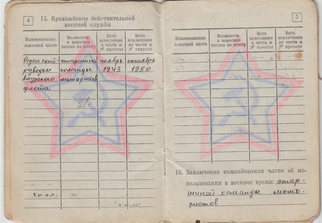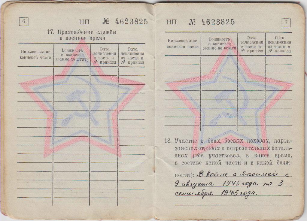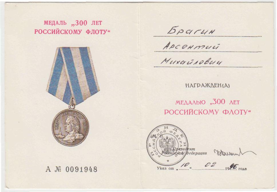 Награды: медаль «За победу над Японией», медаль «За освоение целинных зе-мель», орден Отечественной войны II степени, медаль «300 лет Российскому флоту», медаль Жукова, 7 юбилейных медалей.