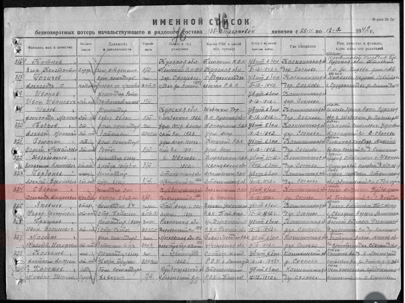Алек сандр Андреевич погиб 14 декабря 1942 г., когда выносил раненых с поля боя. Похоронен в братской могиле на территории Тамбовской области.