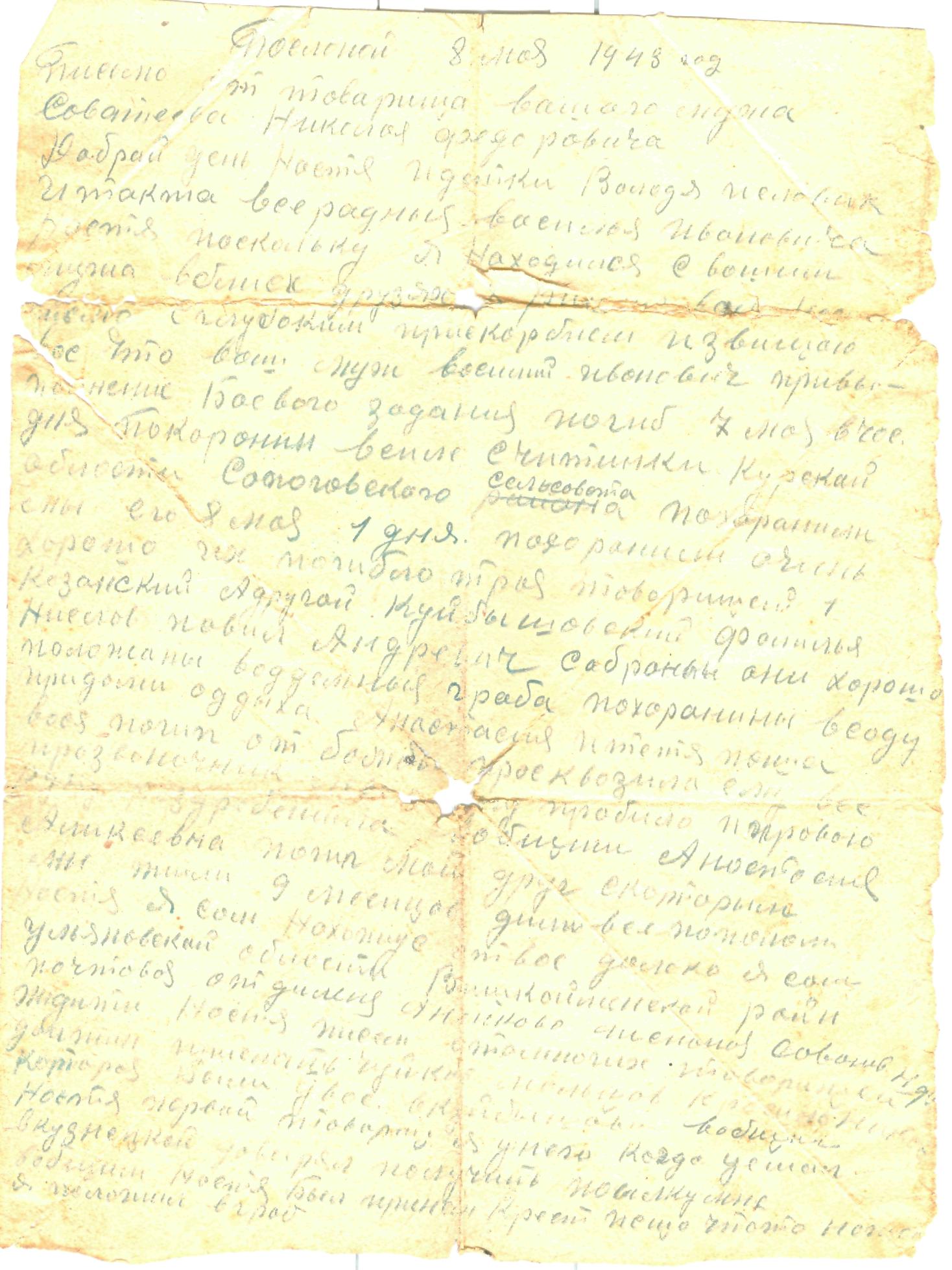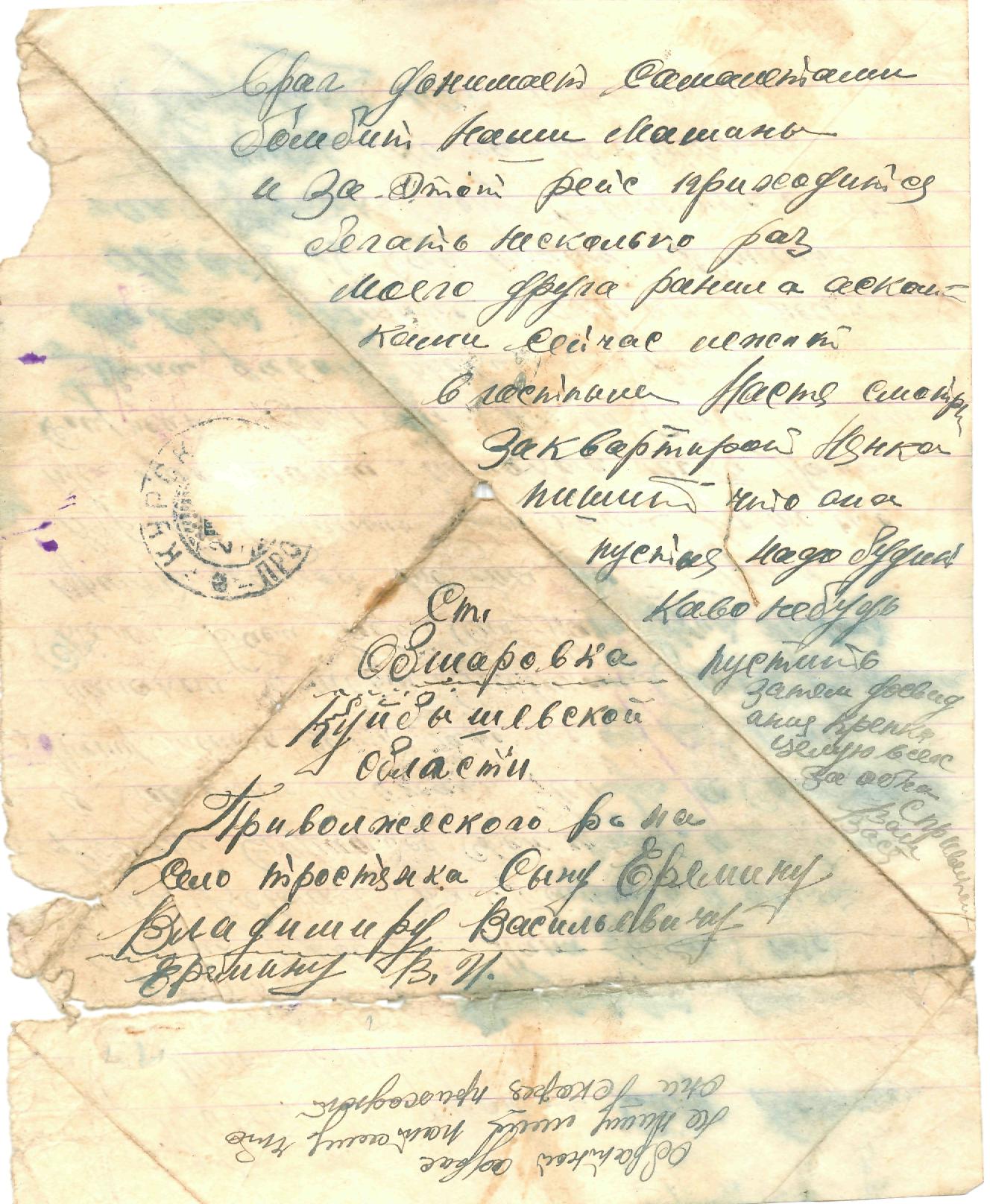 Родился в 1916 г. в с. Тростянка Приволжского района. До войны работал в мест-ном колхозе «Новая жизнь» шофером. Когда началась Великая Отечественная война, ушел на фронт. 7 мая 1943 года, при выполнении боевого задания, Василий Иванович погиб, о чем родным рассказал в письме его друг, Соватеев Николай Федорович. Похоронен в с. Щетинка Обоянского района Курской области, в саду, при доме отдыха. С фронта Василий Иванович Еремин писал письма жене и детям, которые бережно сохранили до сегодняшнего дня его наследники. Вот выдержки из них. Из письма от 3 мая 1943 г.: «…Я ваше письмо получил, за которое очень благодарю… Я никак не могу увидеть никого из Куйбышевской области. Мы ездим везде, возим подарки на головы не-мецким врагам. И ещё рад, что мои детки (Вовочка и Славик) стремятся изо-брести машину и поехать на помощь своему папе для быстрого разгрома врага». Из письма, отправленного из Курска (дата неизвестна): «Привет с фронта. Сыну Вовочке от папы Васи. …Вовочка, слушайся свою маму, и бабаню, а Славика обижать не надо. … Свою бабу только целуй, за то, что она поит тебя молоком… Скажи бабе, папа будет живой, придет домой, мы её будем кормить белыми булочками за то, что она вас поит молоком, пока папа служит… Вовочка, скажи Славику, что папа давит проклятых фашистов на своей машине… Мама и жена Настя, я вас прошу, пришлите мне фотокарточку совместную, я очень соскучился. Может не придется свидеться, нас проклятый враг донимает. Самолетами бомбит наши машины и за рейс приходится бегать несколько раз. Моего друга ранило осколками, сейчас лежит в госпитале…».