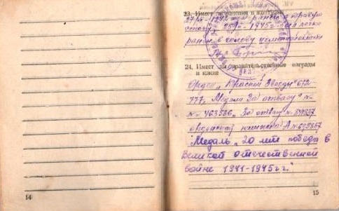 Из воспоминаний сына, Савельева Валентина Анисимовича: «Мой отец, Савельев Анисим Александрович, родился 2 февраля 1910 г. в селе Новое Ганькино Исаклинского района Куйбышевской области. Действительную службу проходил в начале 30-х годов. Помню, в 1939 году в день Рождества люди гуляли – отмечали праздник, а отцу и еще двум мужчинам (это брат отца – Савельев Яков Александрович и Колесников Андрей Николаевич) дали повестку из военкомата – началась война с Финляндией. Через 9 месяцев она закончилась, и все трое вернулись домой. А когда началась война с Германией, мужчин брали на фронт по три-четыре человека сразу, а моего отца призвали в августе 1941 года, наверное, по брони оставляли – он в это время работал председателем колхоза "Первое мая". Однажды целый полк, где служил мой отец, прибыл с фронта в город Бугульма на переформирование. Жили они там1 или 2 месяца, точно не помню. Мы с мамой ездили к отцу на свидание, обратно приехали на военном эшелоне до станции Клявлино, хотя категорически запрещалось перевозить гражданских, но отец как-то договорился с начальником станции. С Бугульмы сразу отправили в Москву на оборону. Там его ранило в ногу, лежал в госпитали. Потом с фронта отправили его в город Алма-Ата в офицерское училище, где он проучился 4 месяца и присвоили ему звание старшины, хотя он не доучился. Войну закончил в Кенигсберге (Калининград) в госпитале, был ранен в голову. После войны старшиной служил в лагере военнопленных, под Москвой. В марте 1946 года вернулся домой. За боевые заслуги был награжден Орденом Красной Звезды (за взятие в плен офицера), двумя медалями "За отвагу", медалью "За оборону Москвы". Из четырех братьев живым вернулся только мой отец. Умер отец 17 сентября 1982 года. Похоронен в поселке Каменка».