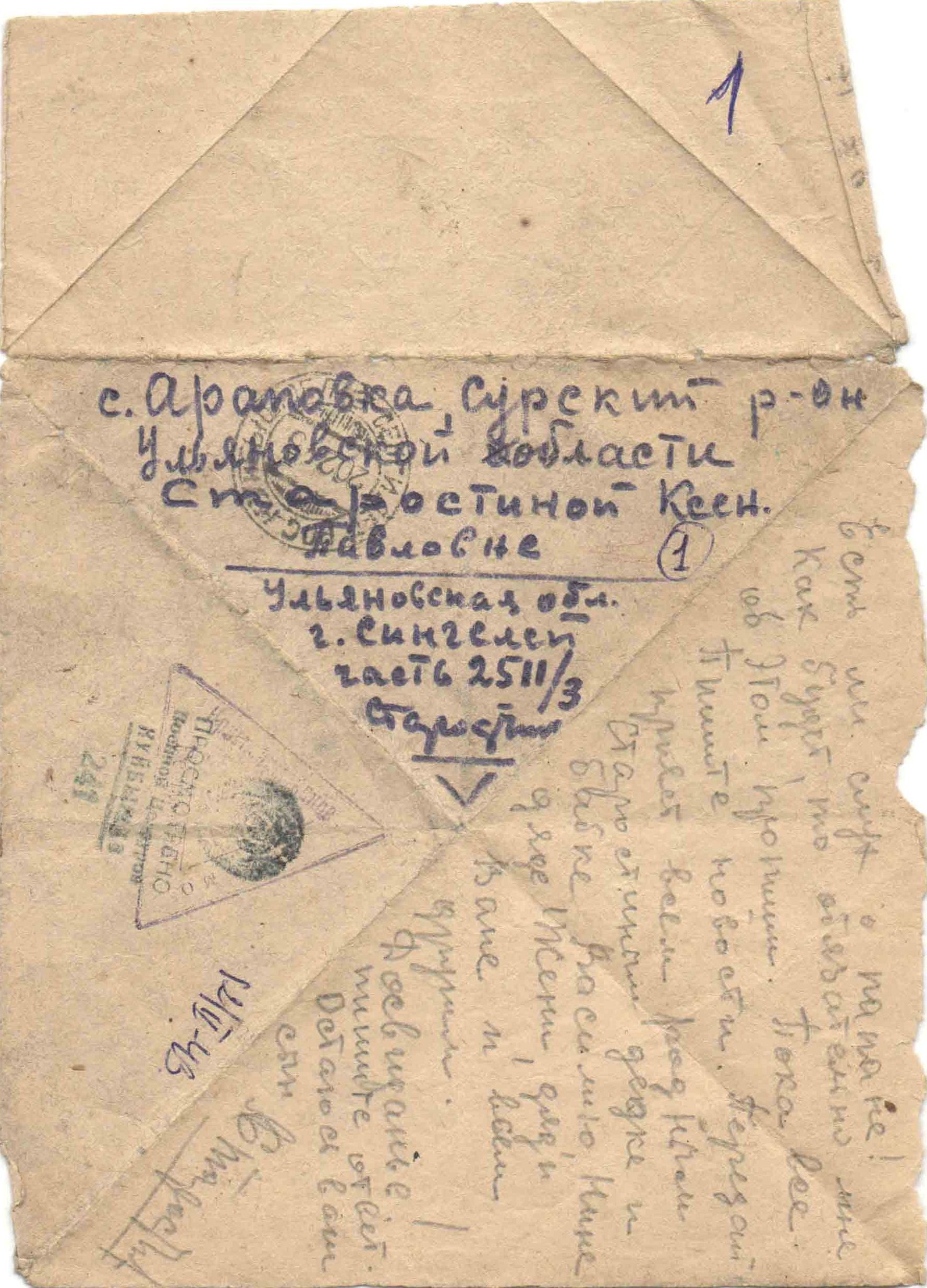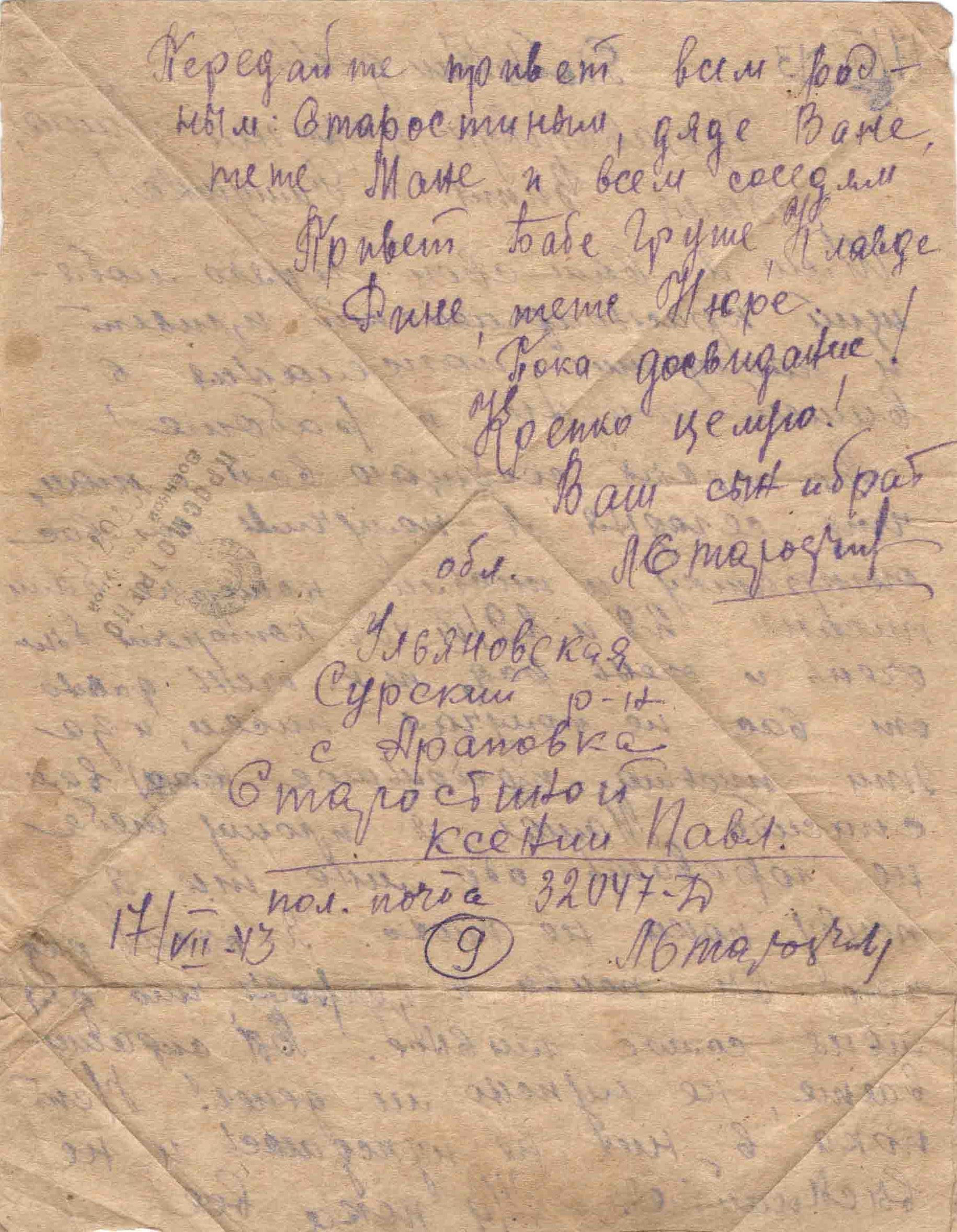 Письмо последнее, п/п 34524-У. Было получено извещение, что рядовой Старостин Лев Федорович пропал без вести в сентябре 1944 г.